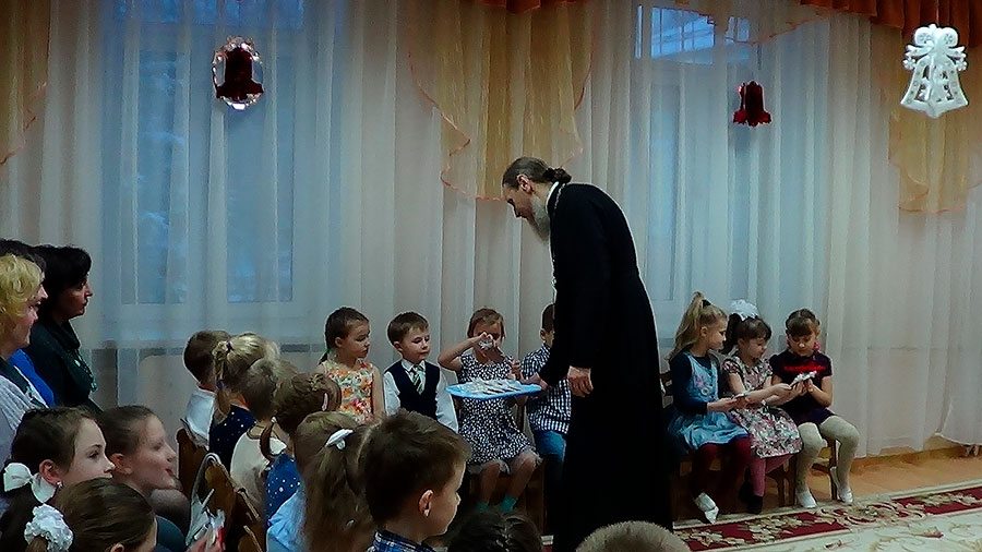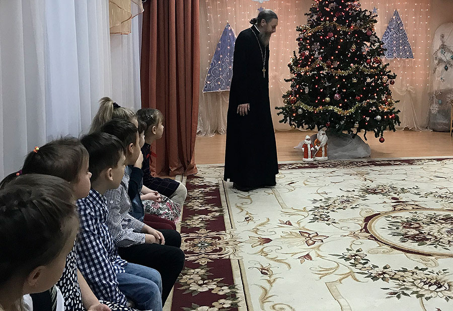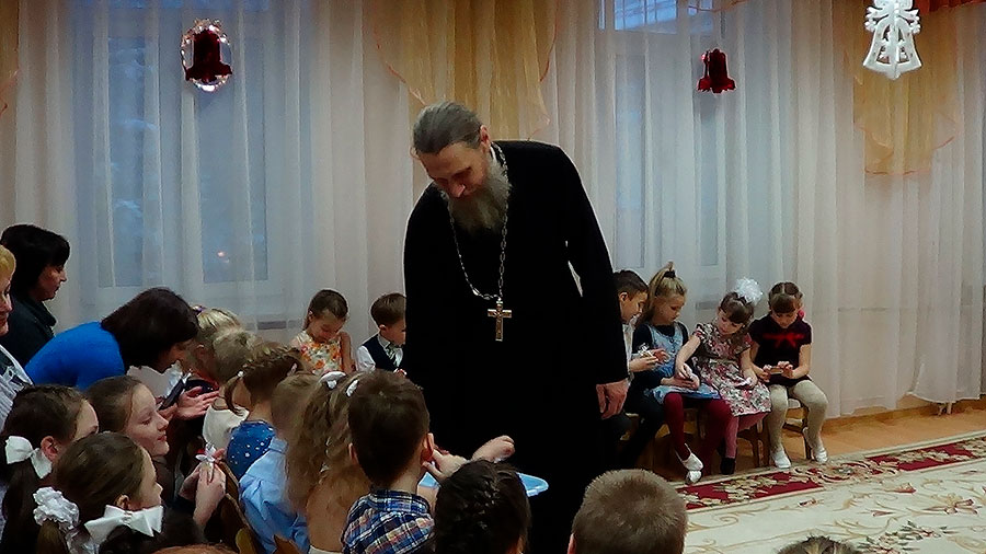 11 января настоятель Покровского храма г. Щелково протоиерей Алексей Никонов, по приглашению заведующей, посетил детский сад №12 «Солнышко» г. Щелково.