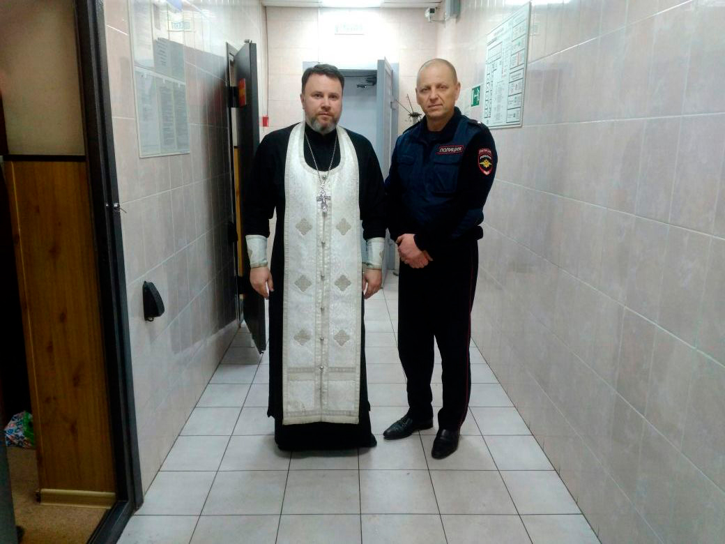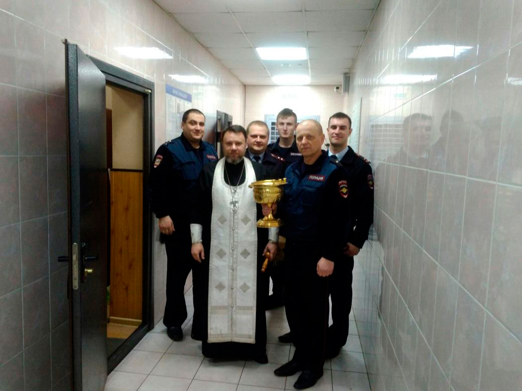 На освящении присутствовали: начальник ИВС майор Д.А. Терентьев, зам.начальника ИВС старший лейтенант В.М. Азарнов, инспектор ИВС капитан А.А. Кузнецов, дежурный группы режима ИВС старший лейтенант А.С. Дегтярев, полицейский ИВС Ю.В. Гузев.