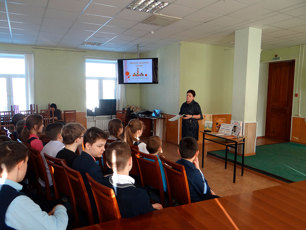 Учащихся средних и старших классов прослушали тематическую беседу «Откуда берутся слова» - о судьбе, казалось бы, самых обычных слов. Т.В. Воронкова рассказала, как возникали слова, как они связаны с историей народа. Вопросы познавательной викторины «Мир русского слова», рассчитанные на внимание и сообразительность, вызвали у школьников большой интерес.