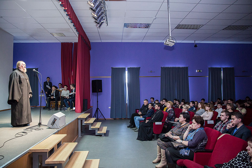 После последовал рассказ студентов о их помощи ветеранам Великой Отечественной войны и в восстановлении порушенных святынь.