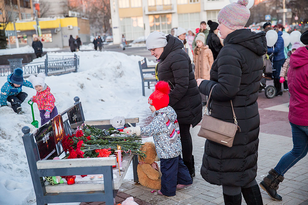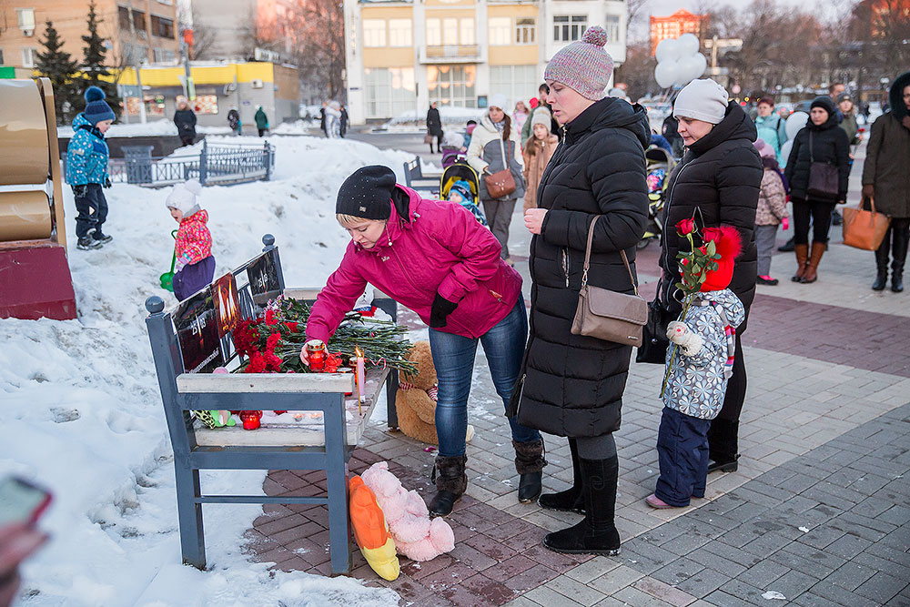 27 марта у временного мемориала памяти на площади Ленина в г. Щёлкове прошла акция памяти по жертвам трагедии в Кемерове.