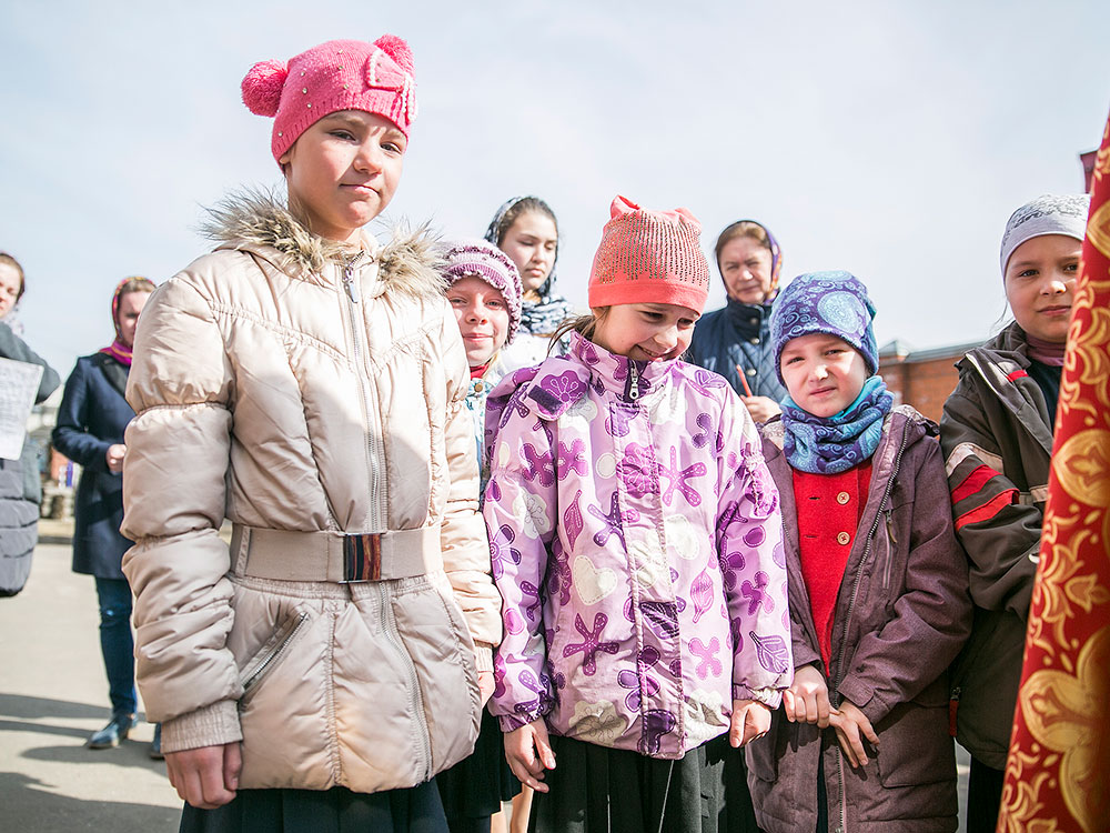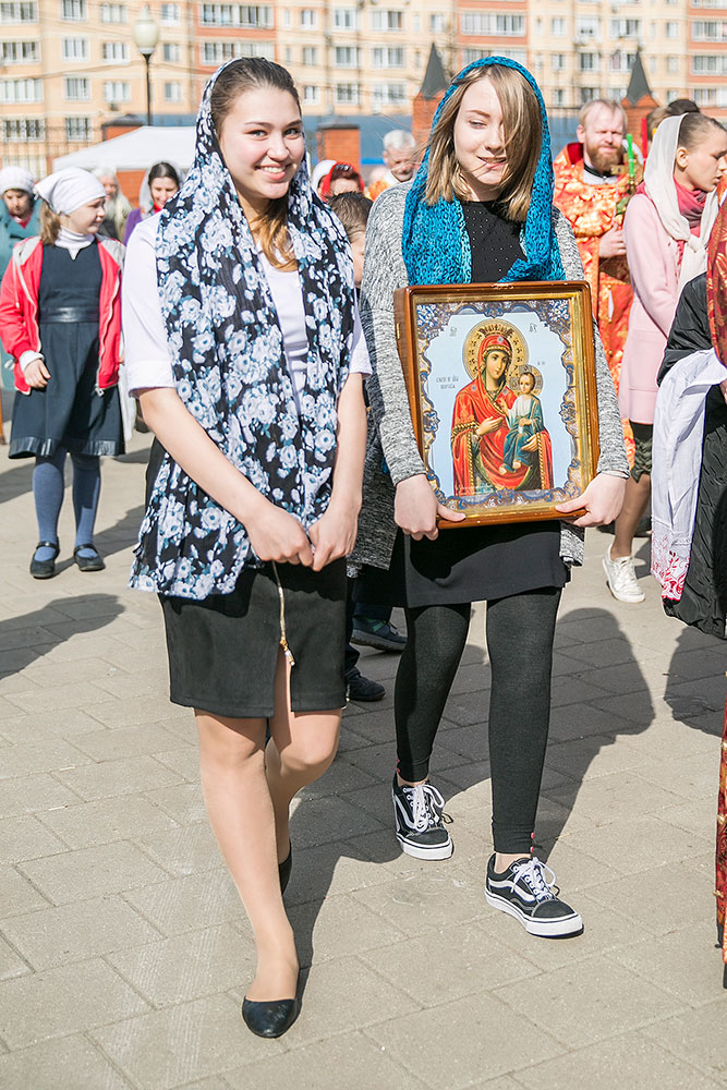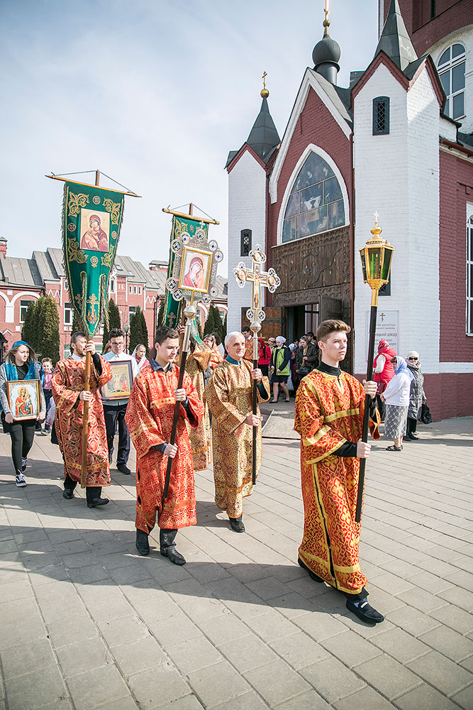 Затем отец Димитрий вместе с клириком собора священником Александром Амелиным совершил праздничный пасхальный крестный хор вокруг храма. В крестном ходе участвовали учащиеся православной гимназии "Ковчег" г. Щелково.