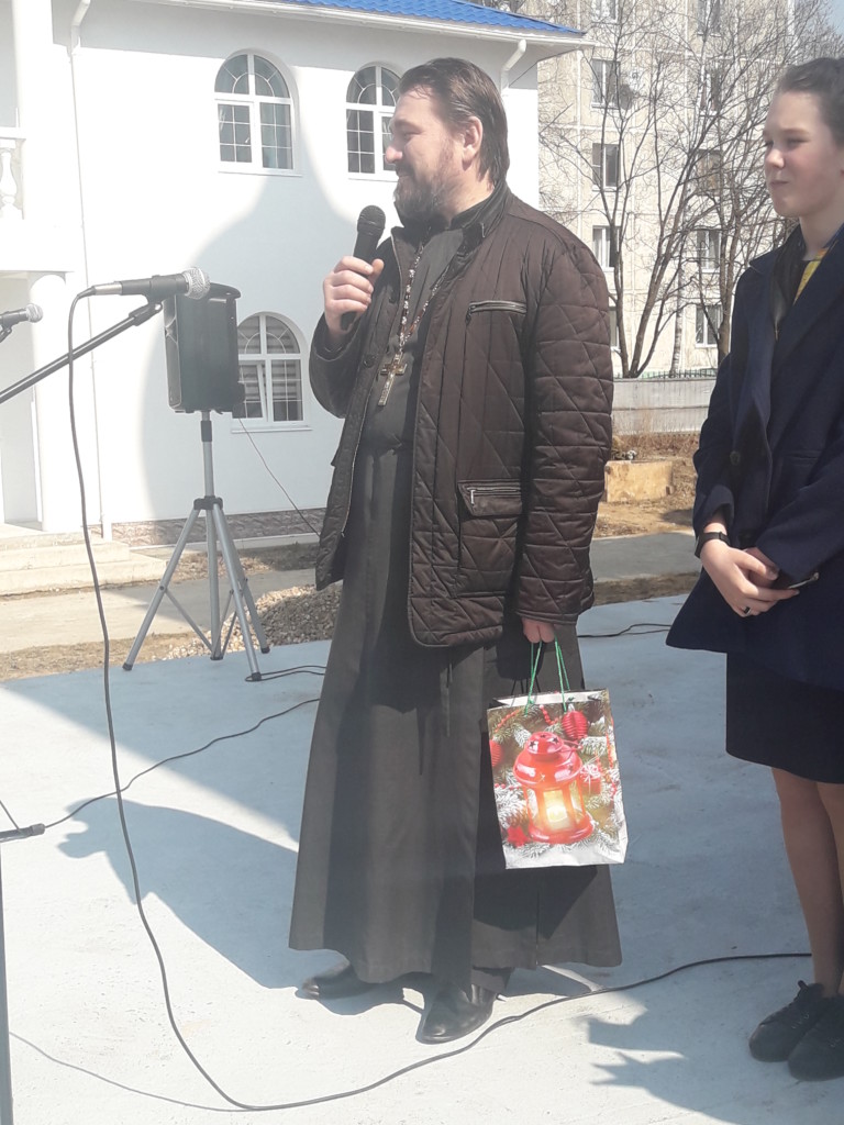 Фестиваль открыл настоятель храма священник Алексий Кукушкин, который обратился ко всем собравшимся со словами поздравления с Светлым Христовым Воскресением.