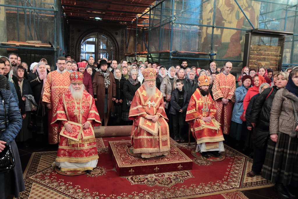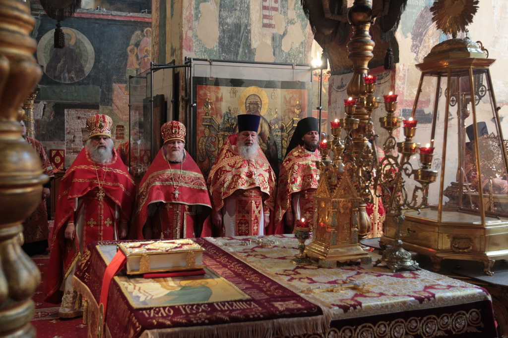 Его Высокопреосвященству сослужили первый викарий Святейшего Патриарха Московского и всея Руси митрополит Истринский Арсений, епископ Луховицкий Петр, секретарь Патриарха Московского и всея Руси по городу Москве протоиерей Владимир Диваков, благочинные церковных округов Московской епархии: Ивантеевского – протоиерей Иоанн Монаршек, Красногорского – протоиерей Константин Островский, Щелковского – протоиерей Андрей Ковальчук, Раменского – игумен Никодим (Лунев), помощник Управляющего Московской епархией по церковно-общественным вопросам протоиерей Петр Иванов, настоятель Вознесенской Давидовой пустыни игумен Сергий (Куксов), заведующий канцелярией Московского епархиального управления иеромонах Сергий (Александров), священнослужители города Москвы и Подмосковья.