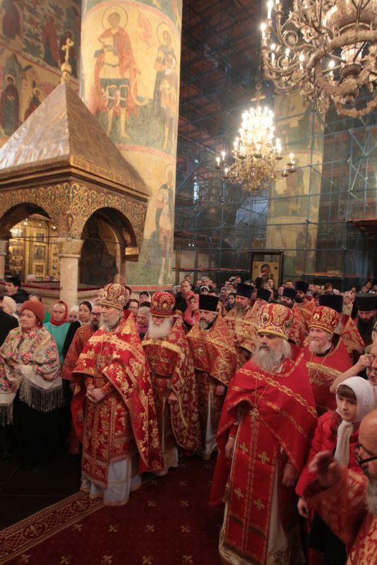 22 апреля, в Неделю 3-ю по Пасхе, святых жен-мироносиц, митрополит Крутицкий и Коломенский Ювеналий совершил утреню и Божественную литургию в Успенском соборе Московского Кремля.