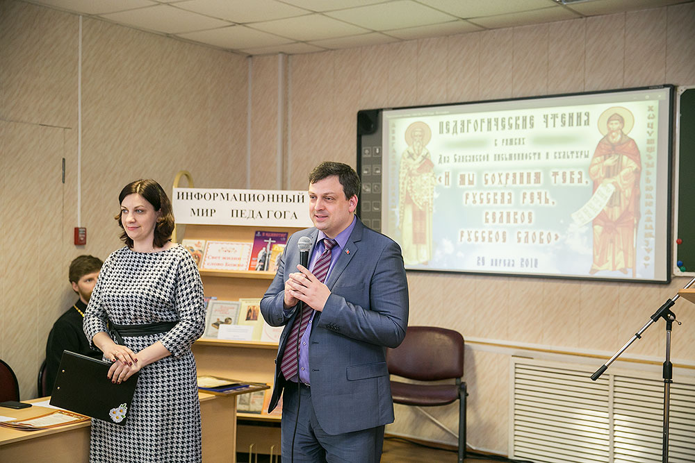С приветственными словами к собравшимся обратились Председатель Комитета по образованию Щелковского района Гавриил Борисович Поляковский, помощник благочинного церквей Щелковского округа священник Димитрий Поповский и помощник благочинного церквей Лосино-Петровского округа священник Валерий Очеретный.