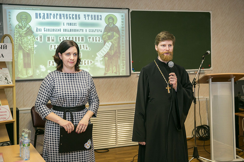 Тема чтений «И мы сохраним тебя, русская речь, великое русское слово» была освящена в докладах: заместителя заведующего по воспитательно-методической работе МБДОУ ЦРР Детский сад № 38 «Солнышко» пос. Фряново Яковлевой Веры Евстафьевны, заместителя директора по УВР МБОУ СОШ № 16 Евтишенковой Ирины Павловны, руководителя отдела религиозного образования и катехизации Щелковского благочиния священника Димитрия Поповского, ведущего методиста отдела маркетинга и досуга МБУК ЩМР МЦРБ «Межпоселенческой центральной районной библиотеки» Бовдуй Галины Сергеевны.