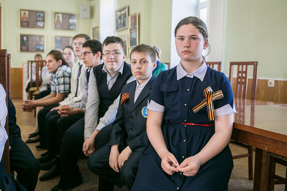 Гимназисты подготовили и приняли участие в музыкально-литературных композициях. Учащиеся 3, 4, 5 и 7 классов прочитали стихи на военную тему. Ученики 6 класса показали презентации: Новиков Никита о героях антифашистах, обыкновенных школьниках, которые ценой своей жизни помогали Советской Армии и всему советскому народу приблизить День Победы; Бескова Алиса – о своем ныне здравствующем 93-летнем прадедушке Королеве Сергее Алексеевиче, герое войны, освободителе не только территории СССР, но и союзных государств - Австрии, Румынии, Болгарии и Польши. Ученики танцевальной студии «Гармония» под руководством Бальва Маргариты Борисовны исполнили танец на мотив «Смуглянки».