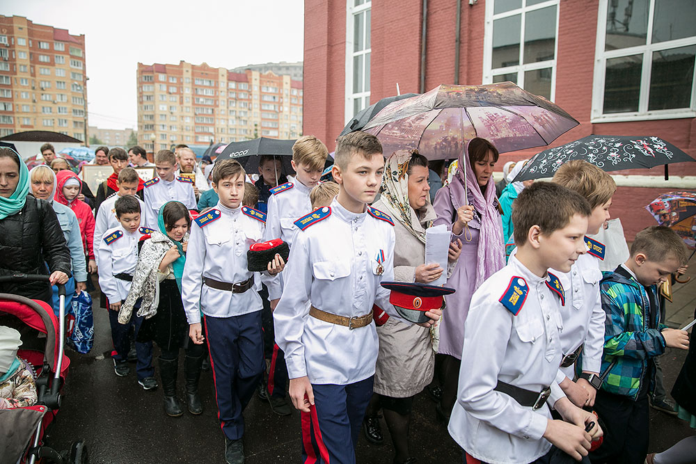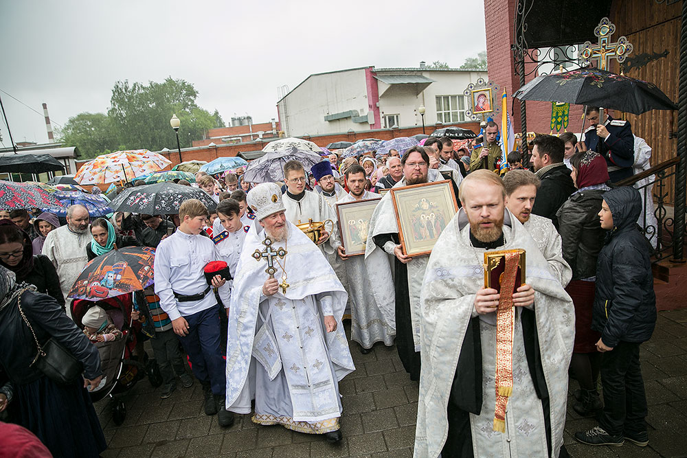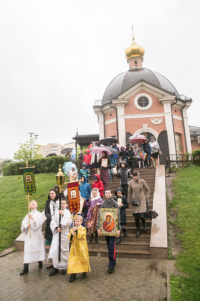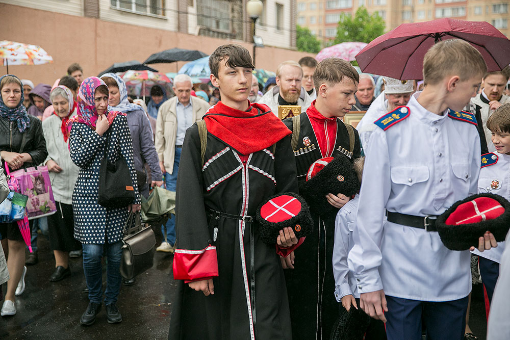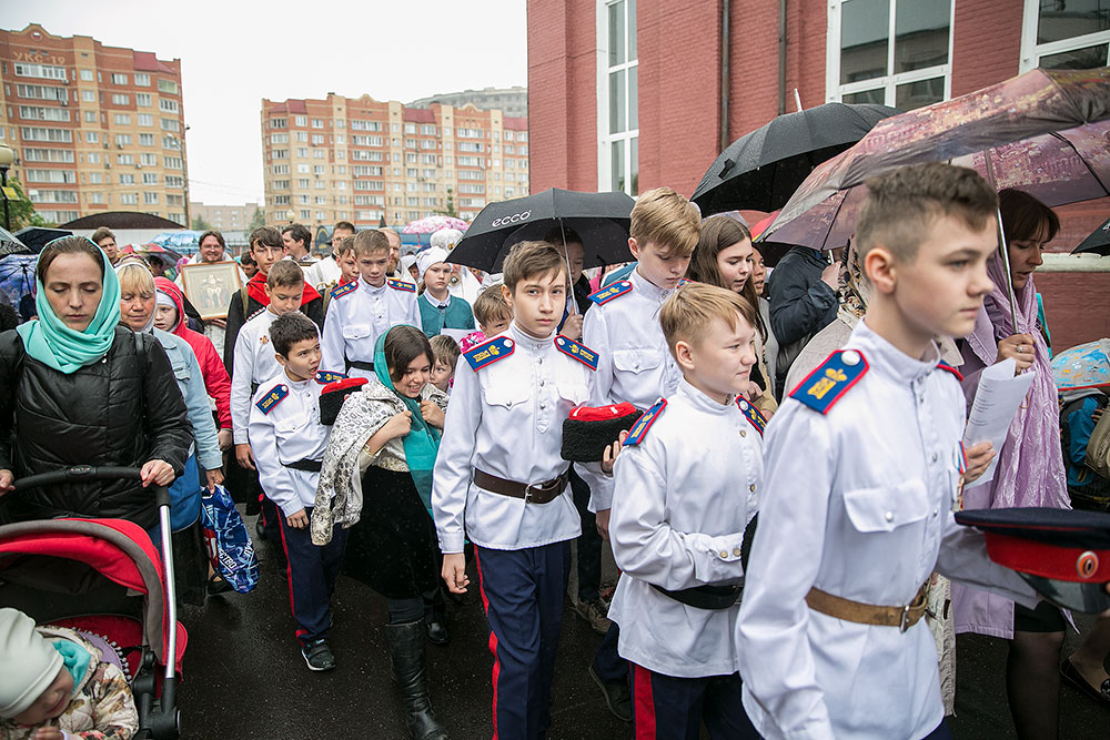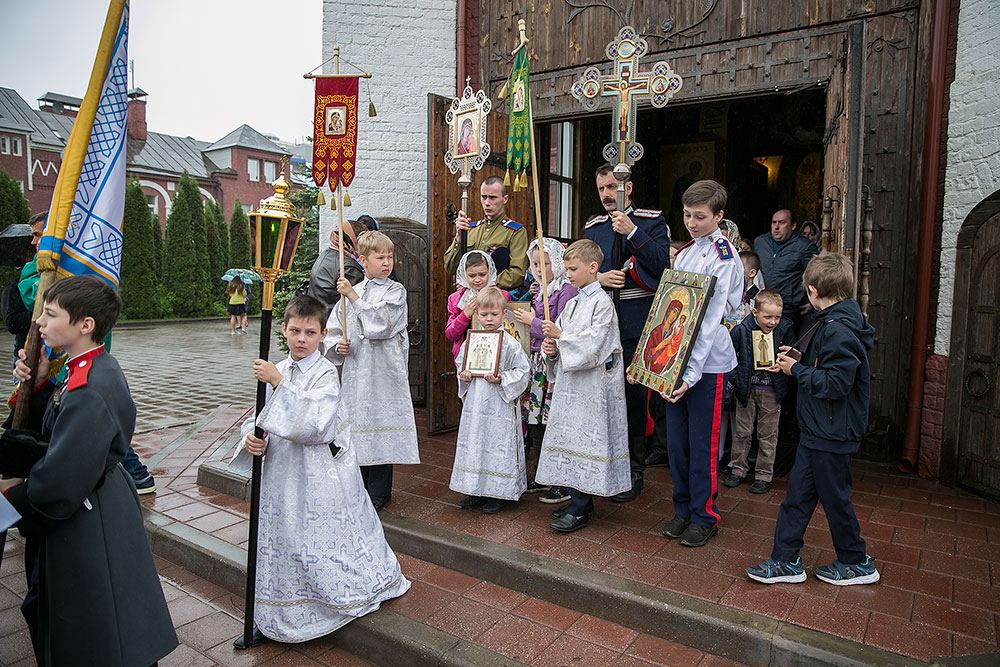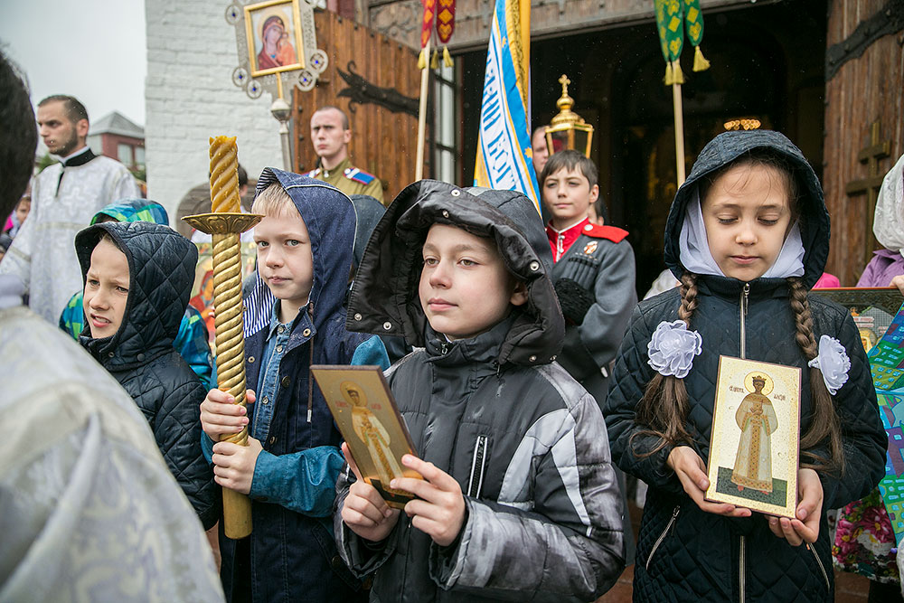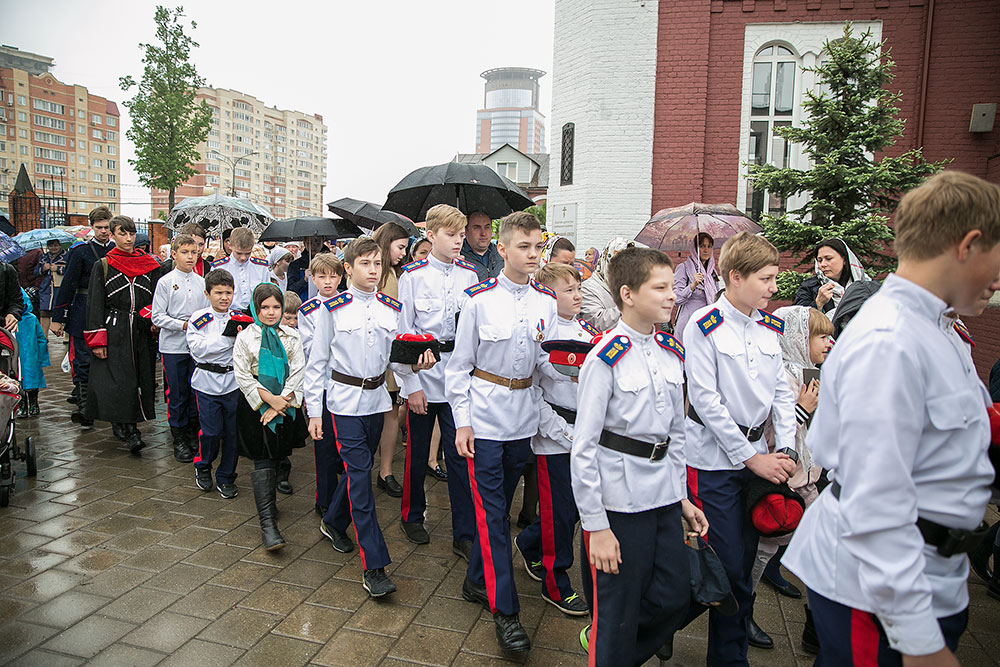 После литургии состоялся праздничный молебен святым Царственным страстотерпцам с крестным ходом вокруг храма. В крестном ходе приняли участие воспитанники Воскресной школы им. Цесаревича Алексия при Троицком Соборе г. Щелково, учащиеся Православной гимназии «Ковчег» г. Щелково и Щелковский сводно-казачий Цесаревича Алексея кадетский отряд.