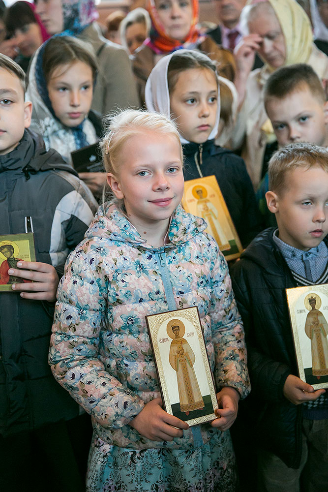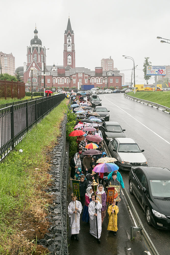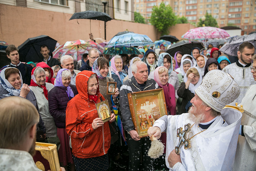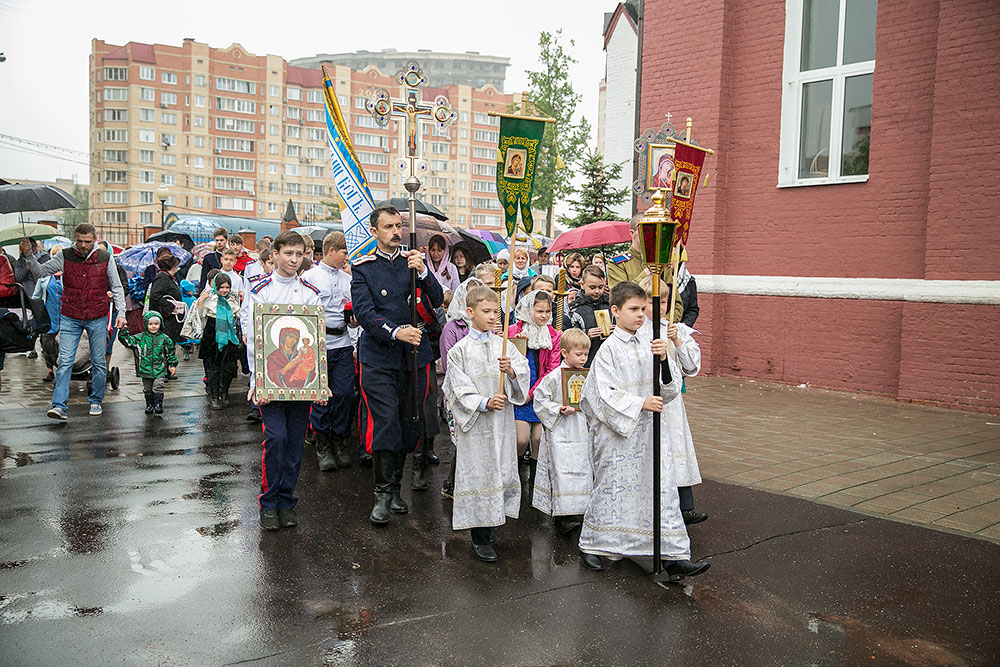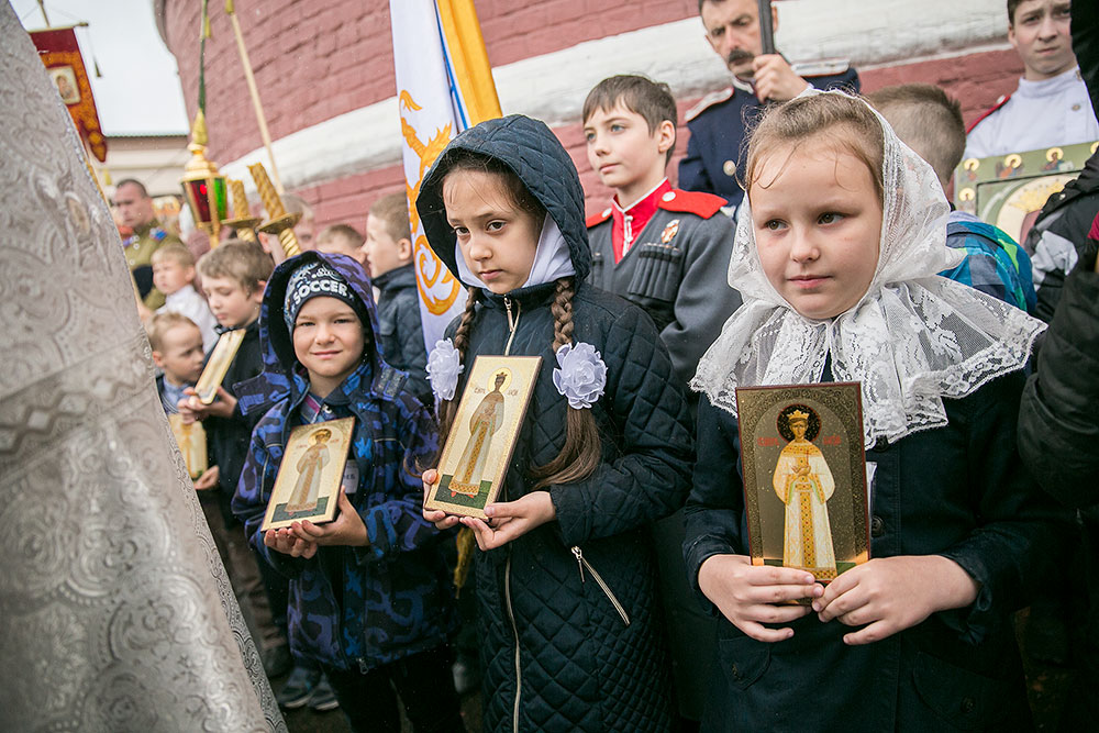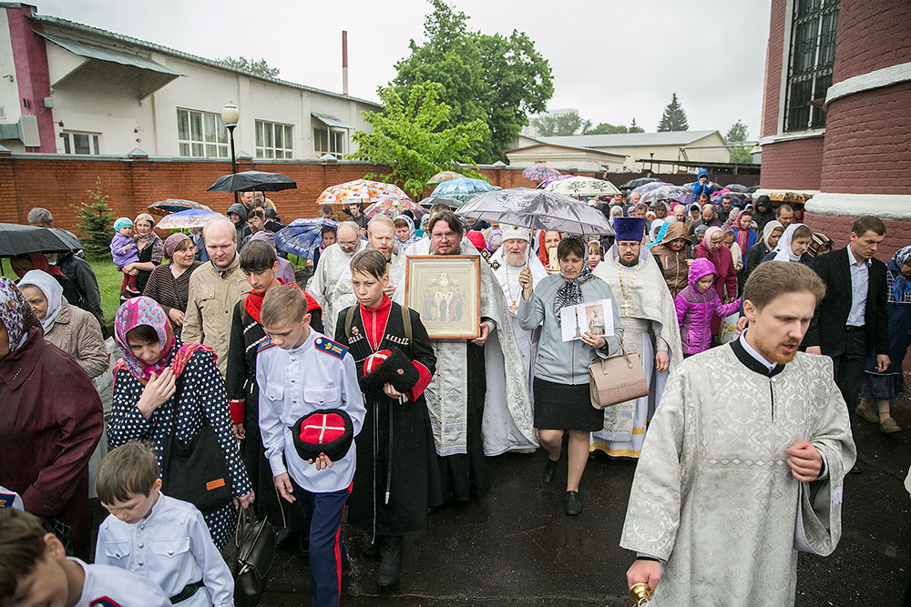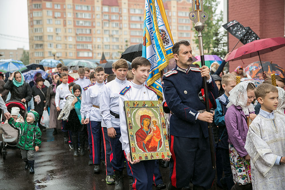 После литургии состоялся праздничный молебен святым Царственным страстотерпцам с крестным ходом вокруг храма. В крестном ходе приняли участие воспитанники Воскресной школы им. Цесаревича Алексия при Троицком Соборе г. Щелково, учащиеся Православной гимназии «Ковчег» г. Щелково и Щелковский сводно-казачий Цесаревича Алексея кадетский отряд.