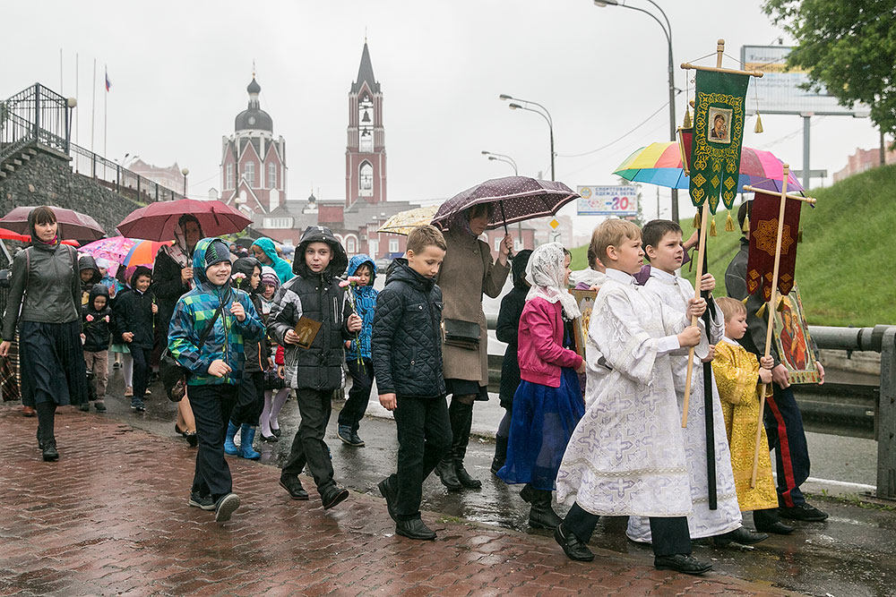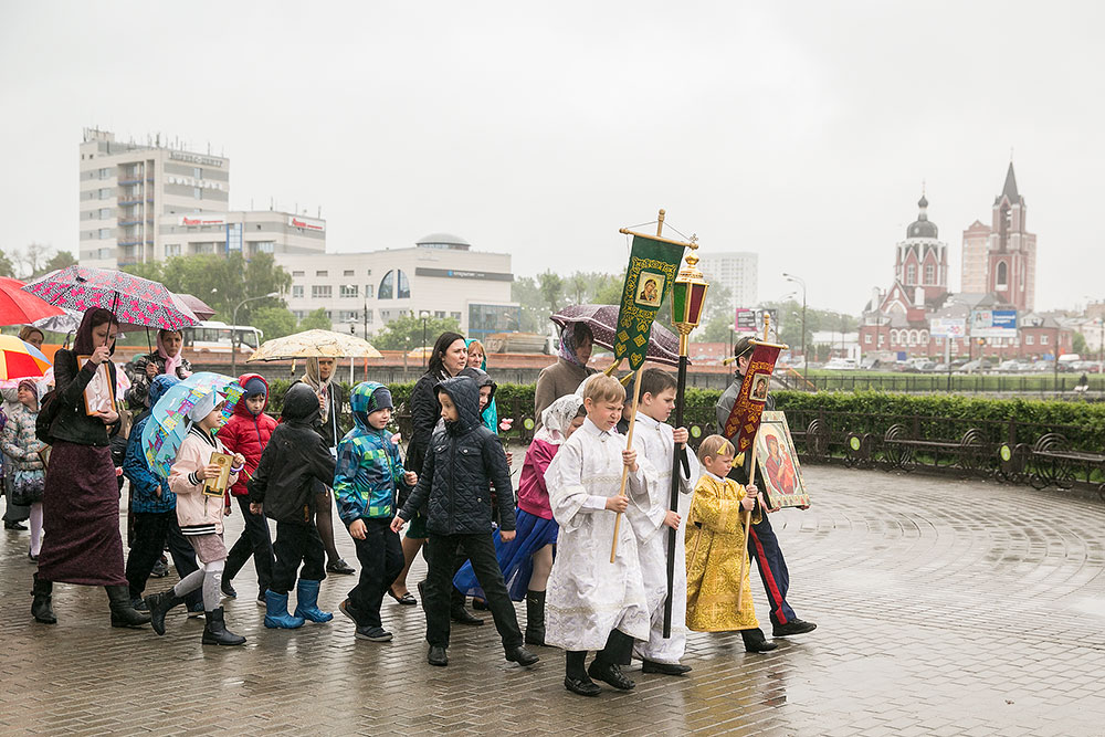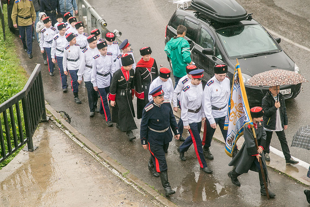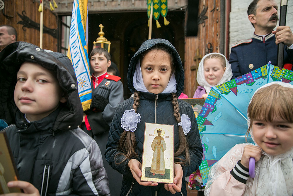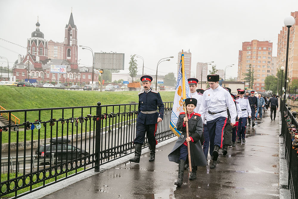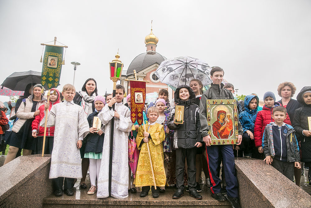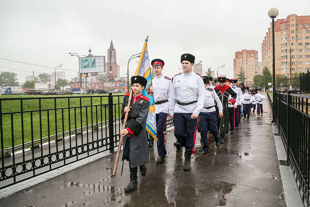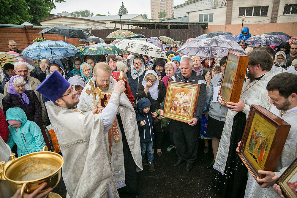 После литургии состоялся праздничный молебен святым Царственным страстотерпцам с крестным ходом вокруг храма. В крестном ходе приняли участие воспитанники Воскресной школы им. Цесаревича Алексия при Троицком Соборе г. Щелково, учащиеся Православной гимназии «Ковчег» г. Щелково и Щелковский сводно-казачий Цесаревича Алексея кадетский отряд.