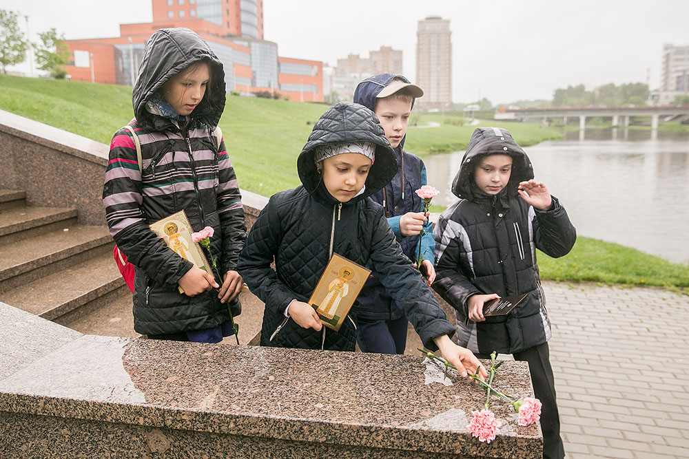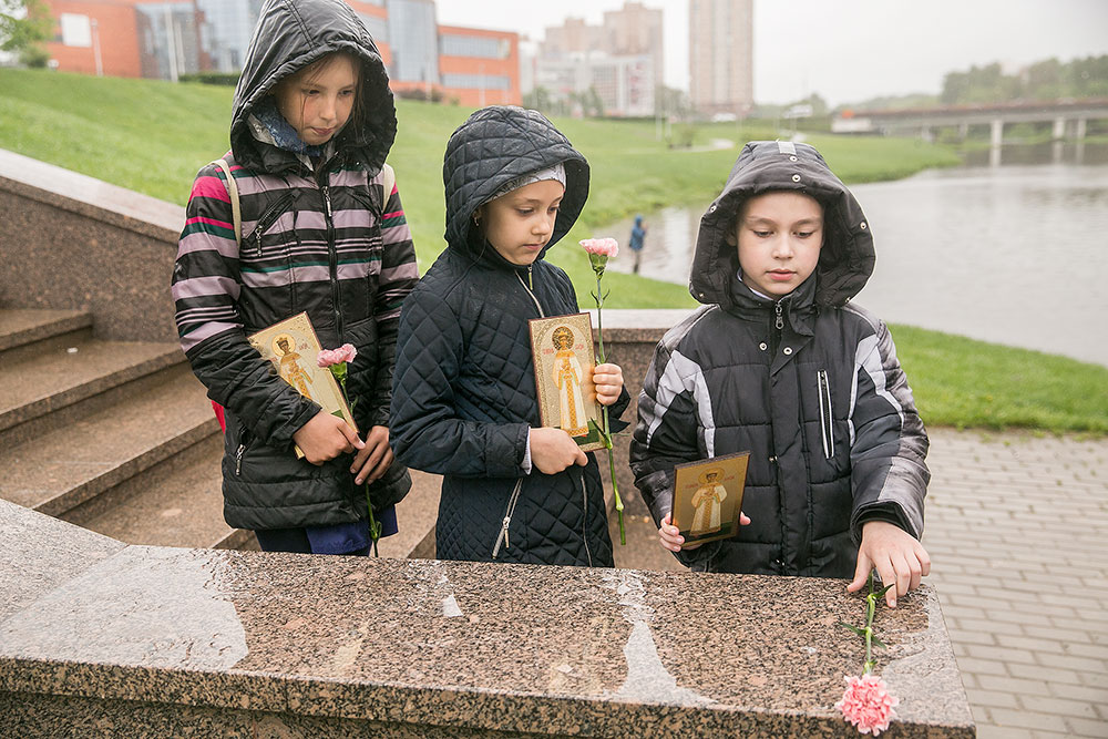 По окончании праздничного богослужения в Троицком соборе все прошли крестным ходом к месту установки памятника царевичу Алексию на набережной Серафимо-Саровского г. Щелково где возложили цветы.