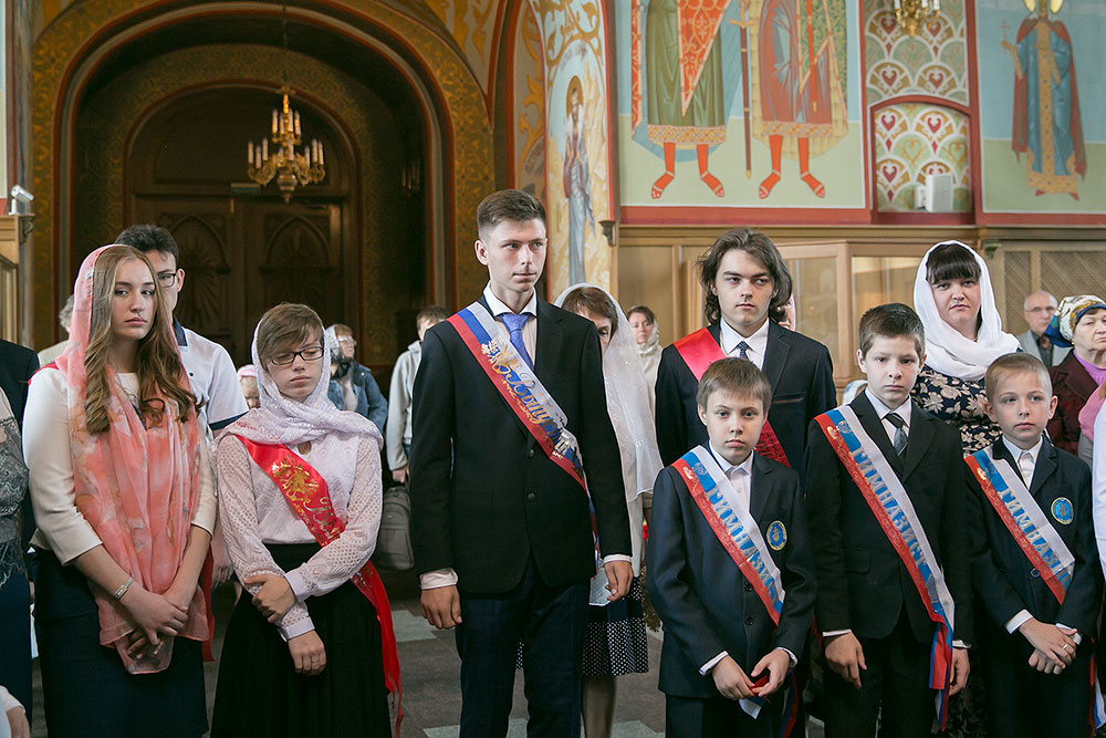 В Троицком соборе г. Щелково благочинный Щелковского церковного округа протоиерей Андрей Ковальчук, в сослужении духовника гимназии священника Максима Алифанова и клирика собора священника Димитрия Третьякова, совершил благодарственный молебен по окончанию учебы, благословил учеников на успешную сдачу экзаменов и обратился с приветственным словом к педагогам, выпускникам и их родителям.