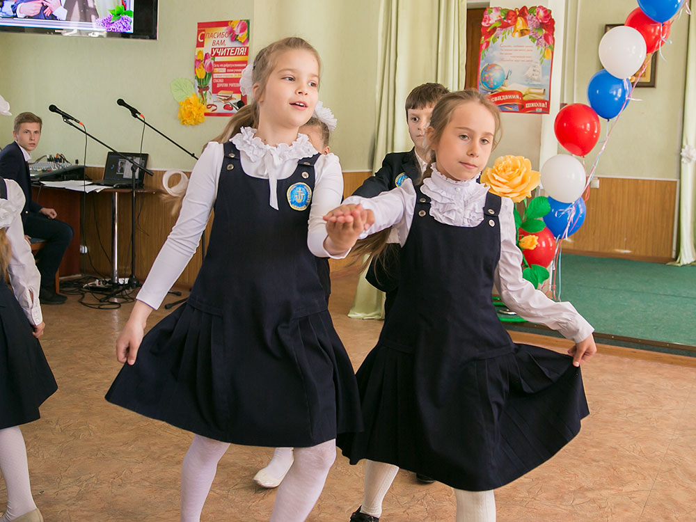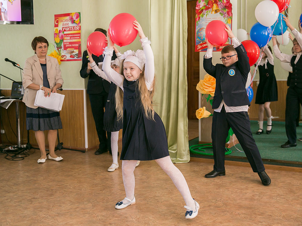 Праздник был насыщен разнообразием номеров: выступление первоклассников с традиционным танцем «Полонез» и стихами, «Танец с шарами» от учащихся 2 и 3 класса.