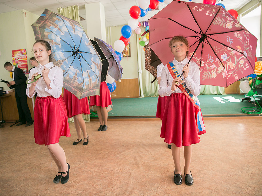 Поздравления были и четвертому классу, которые тоже в этот день праздновали свой маленький выпускной. Классный руководитель Старых Т.В. с волнением желала ребятам успехов в старшей школе. Четвероклассники, прощаясь с начальной школой, разыграли сценку на школьную тему, подарили своему классному руководителю песни и «Танец с зонтиками».