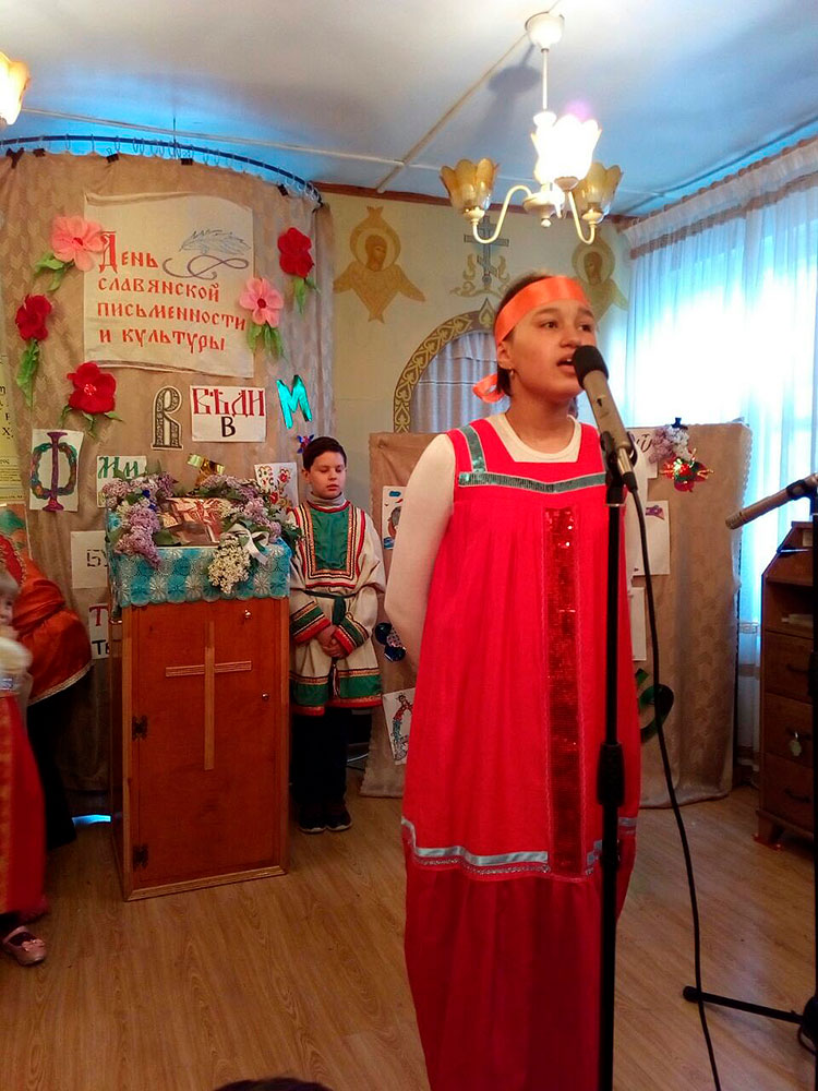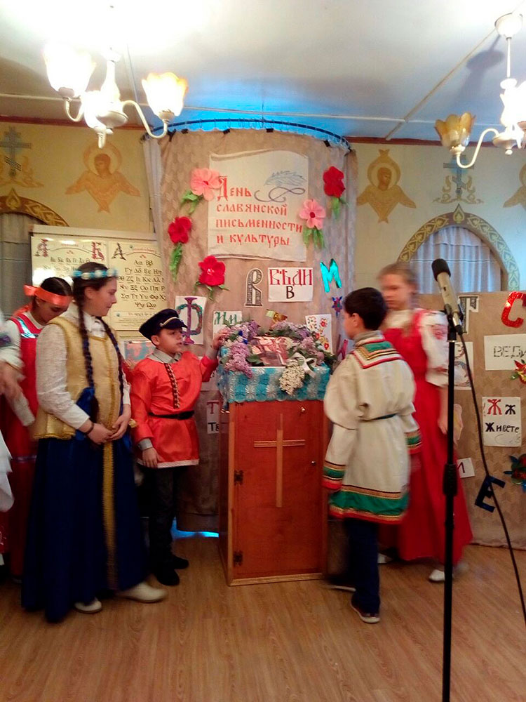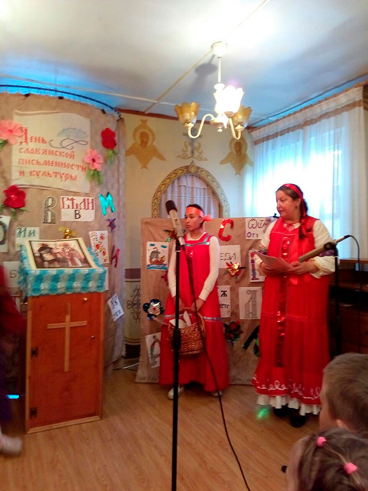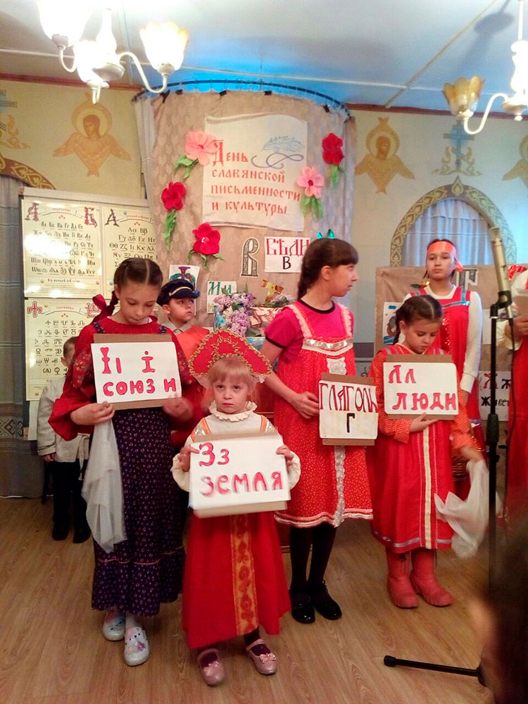 На празднике прозвучали стихи и песни в исполнении детей и взрослых. Запомнилась всем и викторина, посвящённая истории славянской письменности, где дети и взрослые показали неплохие результаты. Все участники были награждены призами. В конце мероприятия были вручены почётные грамоты детям, принимавшим активное участие в жизни воскресной школы. Праздник получился светлым и добрым.