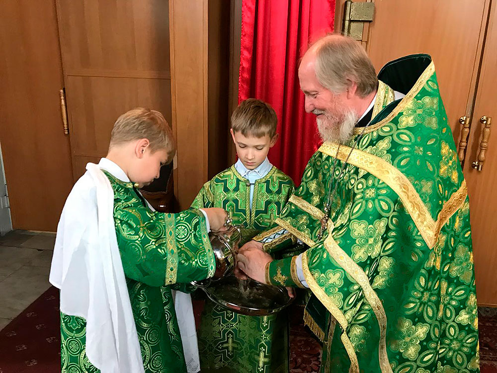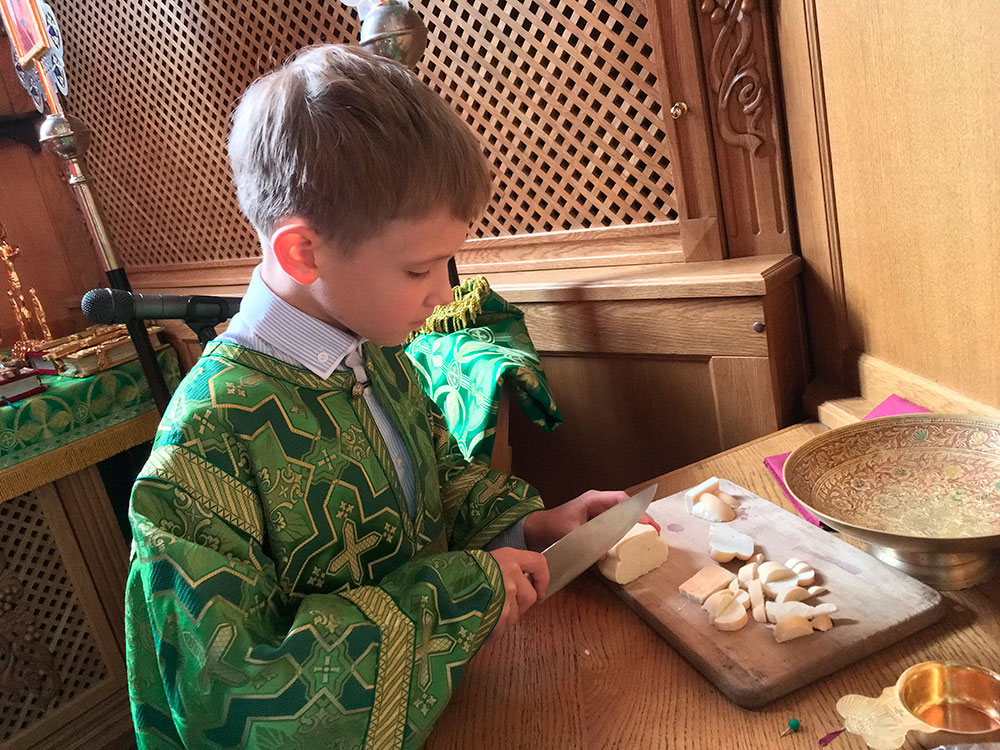 На службе пел хор детей коллектива народного пения «Жалейка» (руководитель – Евгения Мазур). В алтаре прислуживали юные алтарники.
