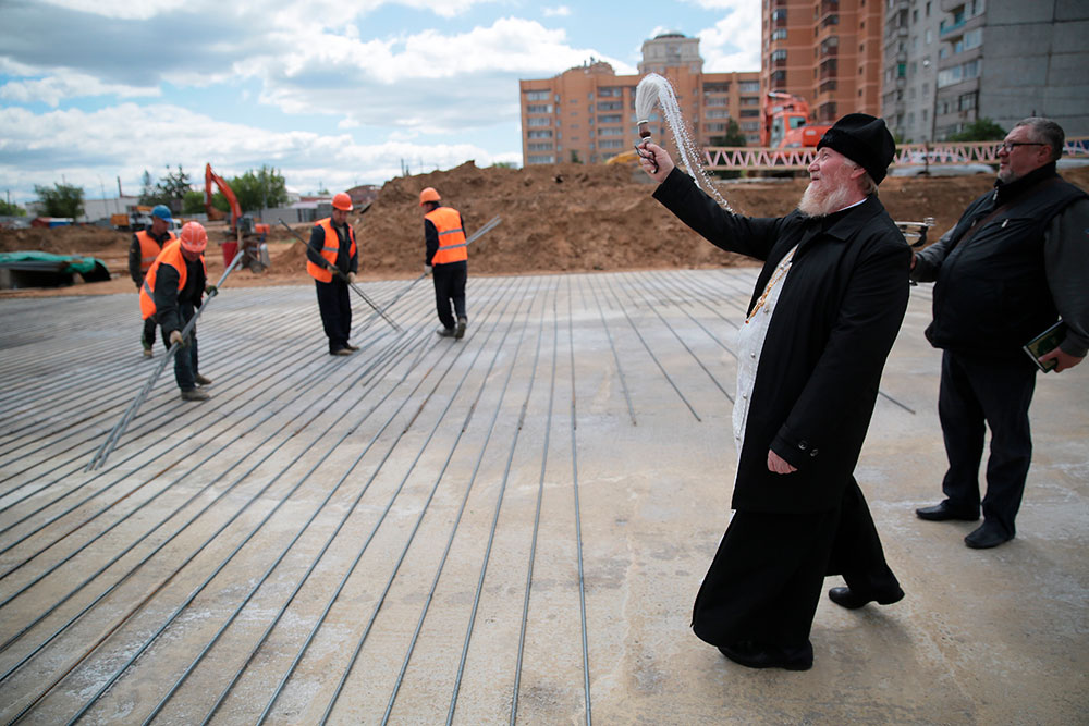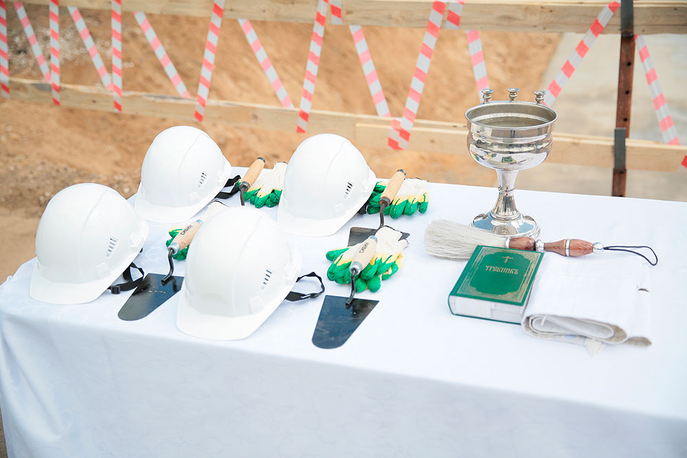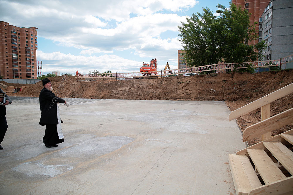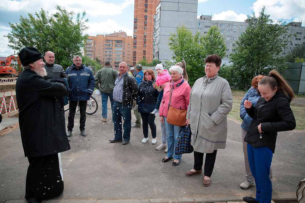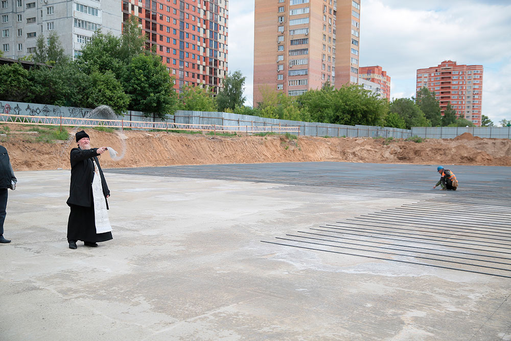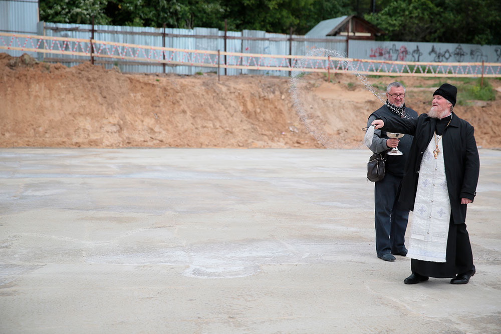 Протоиерей Андрей Ковальчук прочитал молитву на основание нового здания и окропил святой водой место постройки.
