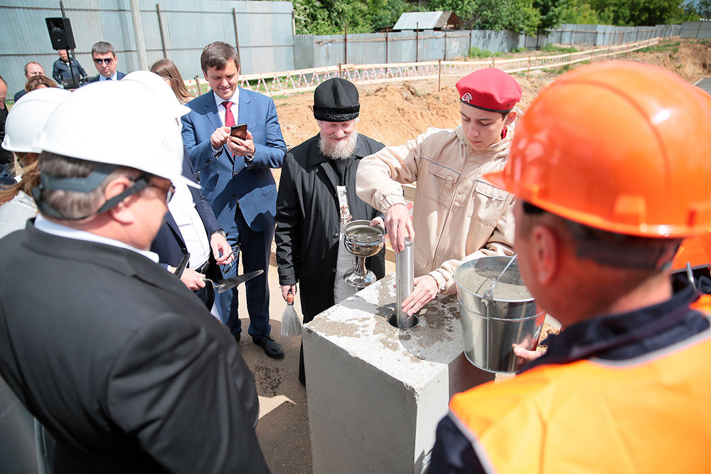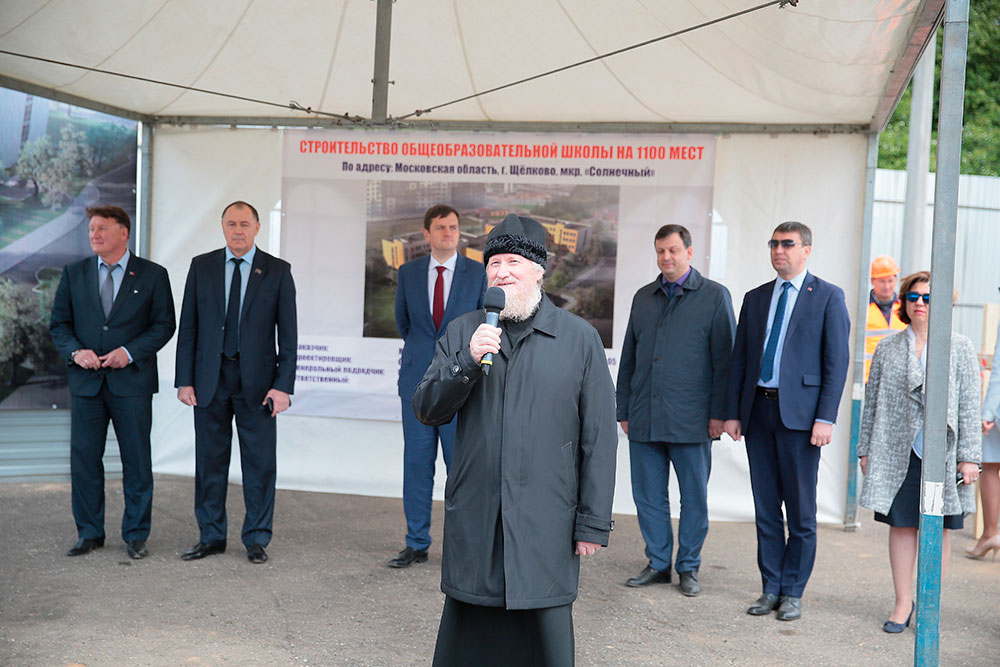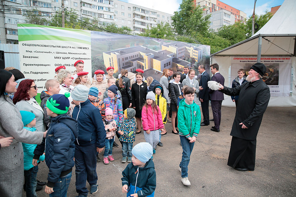 Днем в этот же день благочинный Щелковского округа протоиерей Андрей Ковальчук принял участие в торжественной церемонии закладки капсулы времени в основание строящейся школы в микрорайоне Солнечном г. Щелково. В капсулу было вложено послание потомкам, а также несколько писем от школьников.
