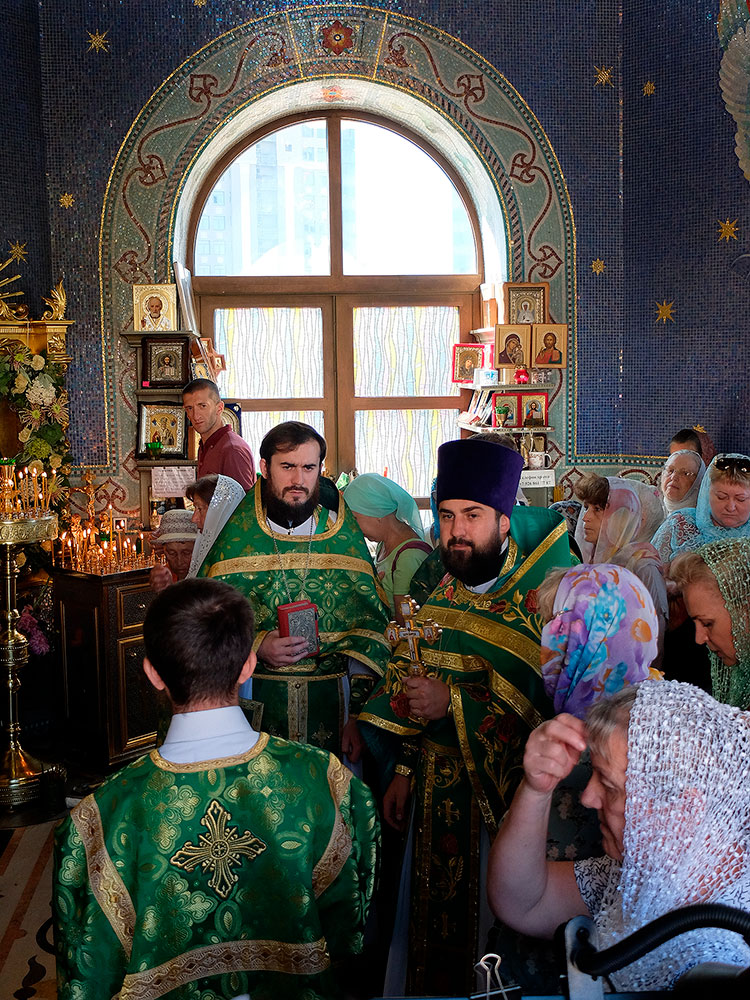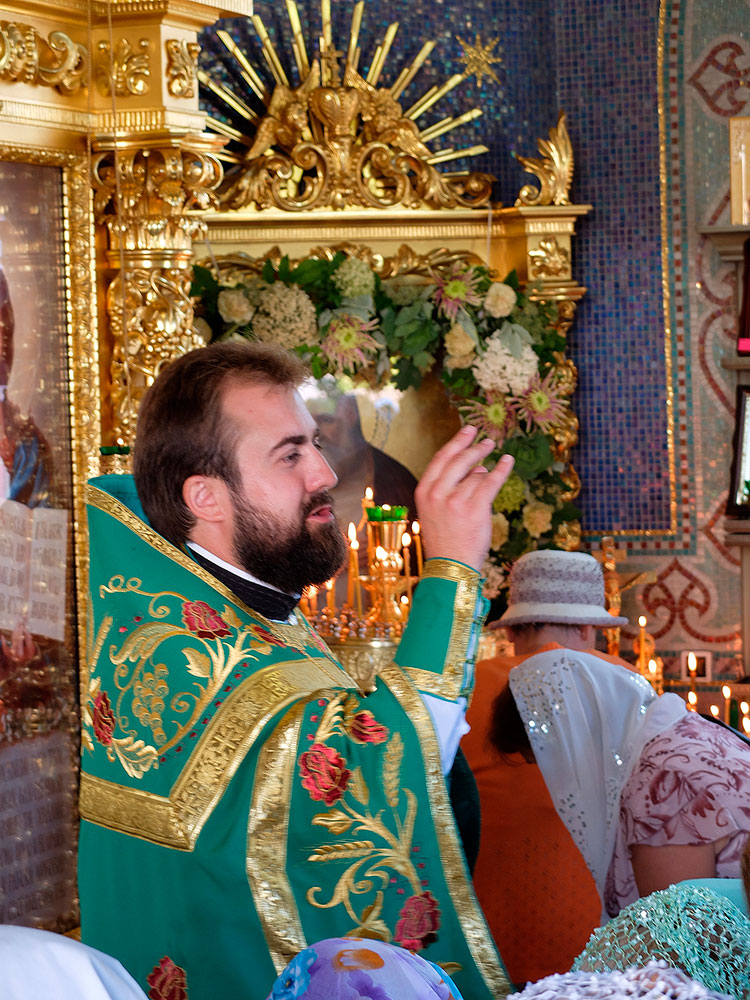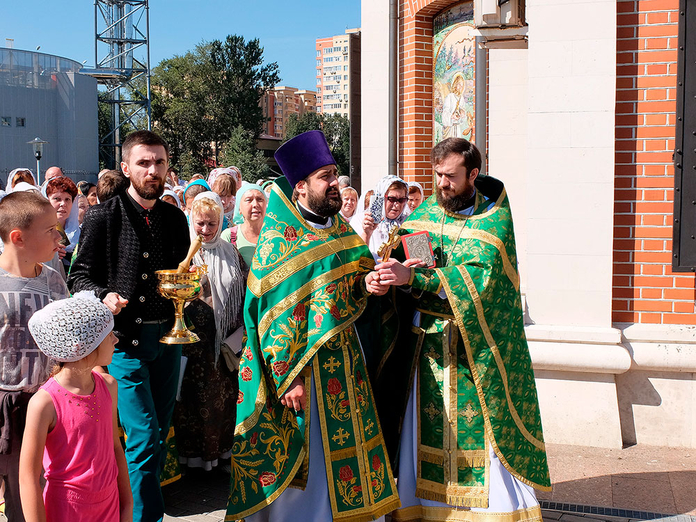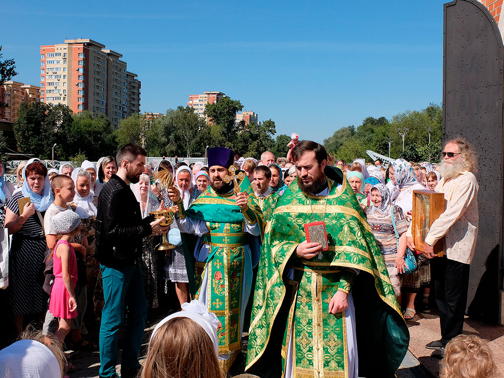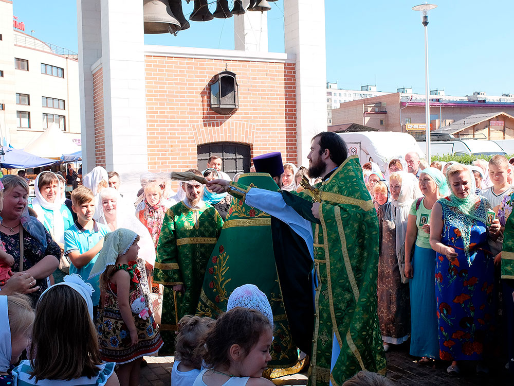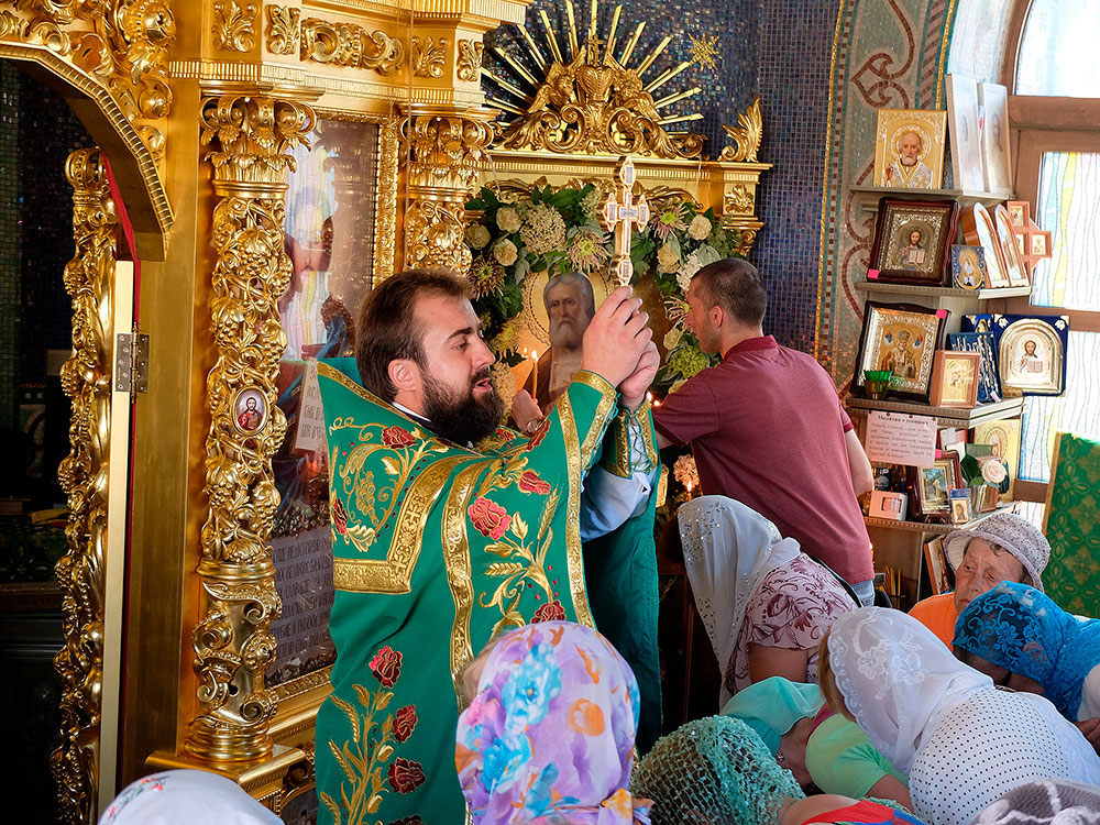 По окончании Литургии был совершен крестный ход вокруг храма. После крестного хода отец Виталий обратился к прихожанам со словами поздравления с престольным праздником.