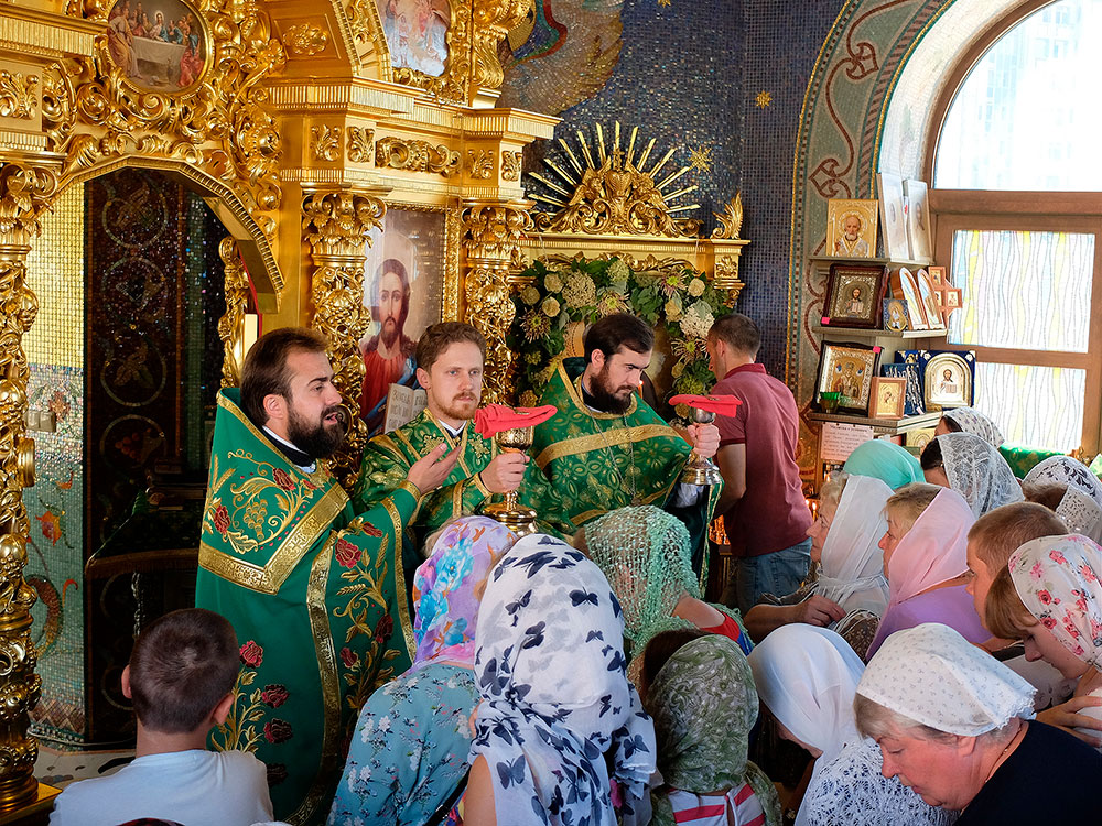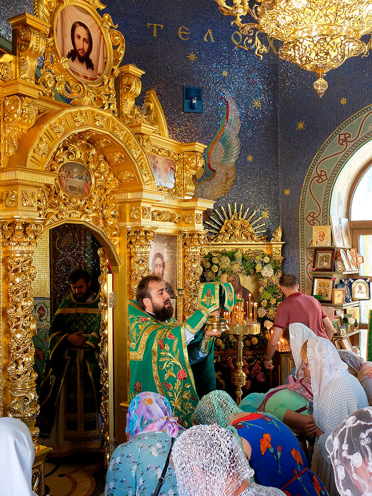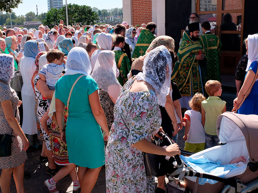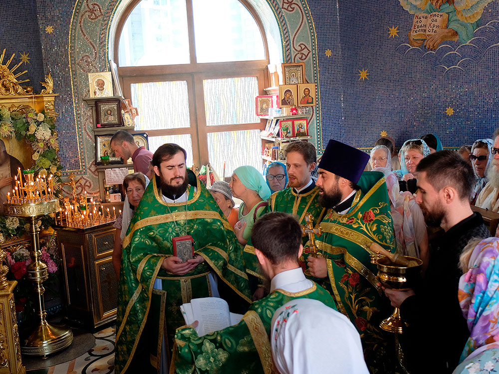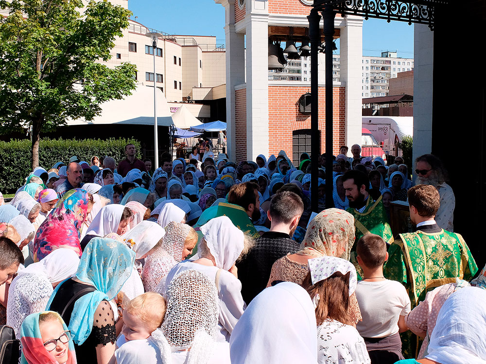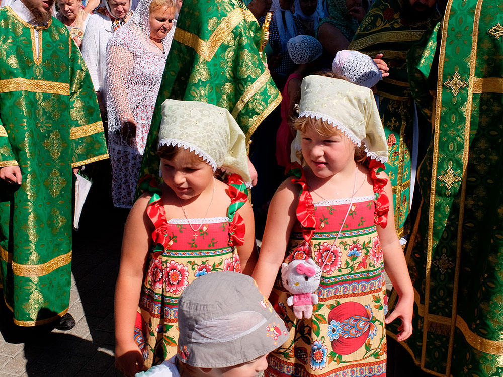 По окончании Литургии был совершен крестный ход вокруг храма. После крестного хода отец Виталий обратился к прихожанам со словами поздравления с престольным праздником.