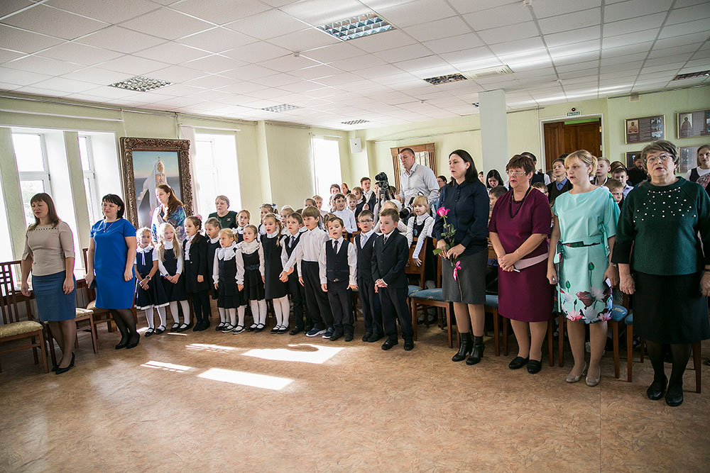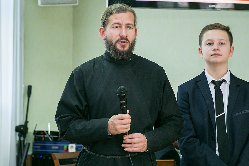 С праздником Дня учителя преподавателей и ребят поздравил духовник гимназии священник Максим Алифанов и заместитель заведующего по УВР Лыгина Анна Викторовна. Гимназисты в подарок учителям показывали сценки, исполняли песни, танцы, рассказывали стихи. Учащиеся от души желали учителям успехов в нелегком труде, терпения, счастья и здоровья.