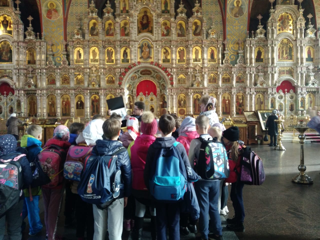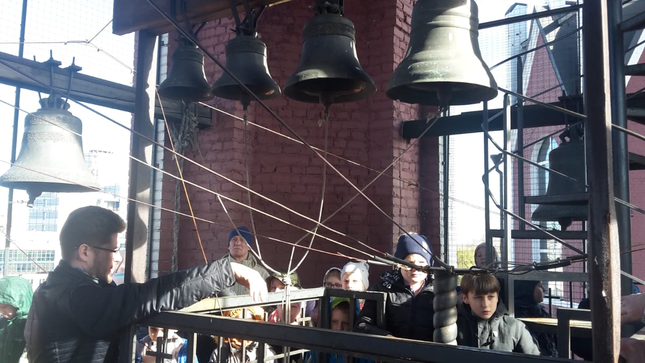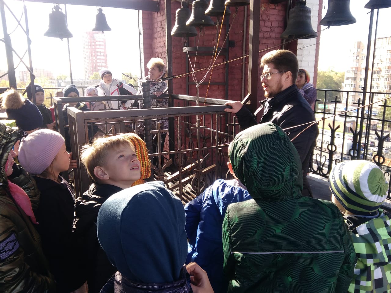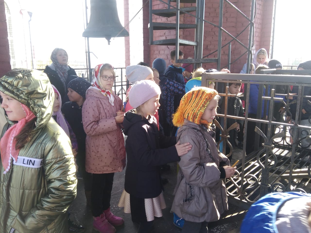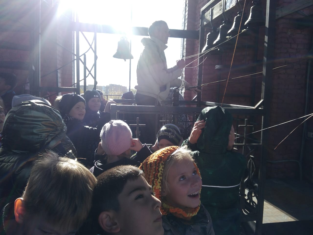 В ходе экскурсии ребята познакомились с историей собора, его убранством, иконостасом. Батюшка провел ребят на колокольню, где они увидели работу звонаря и услышали прекрасный колокольный звон.