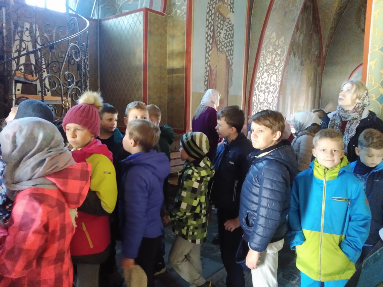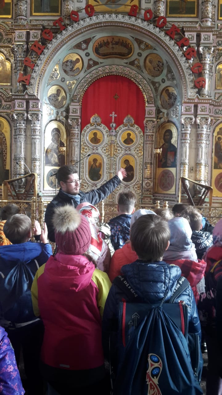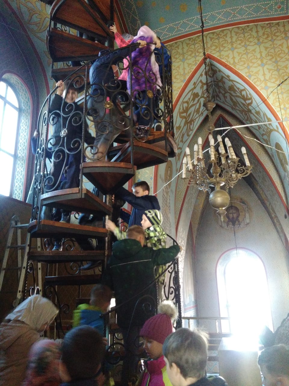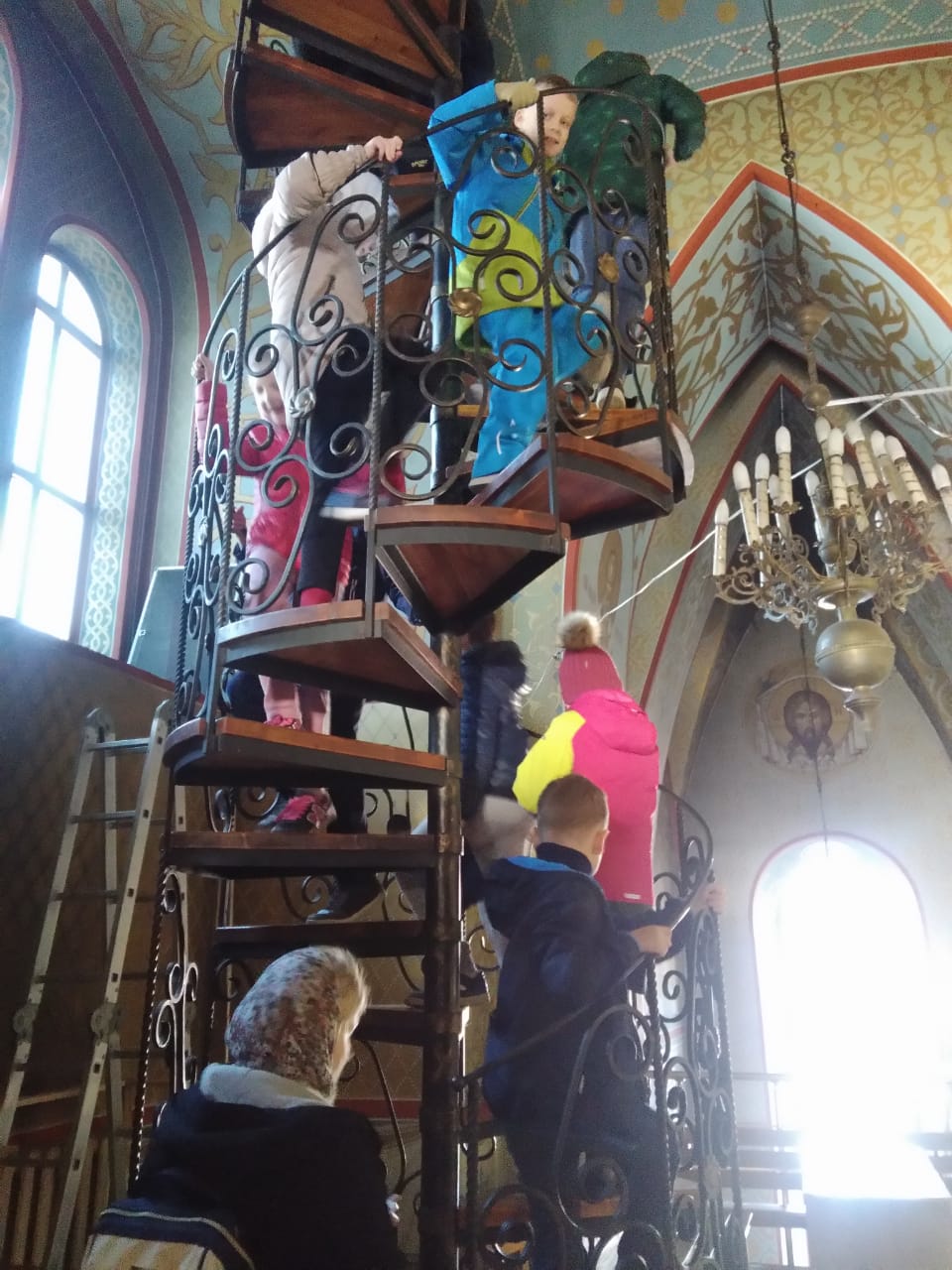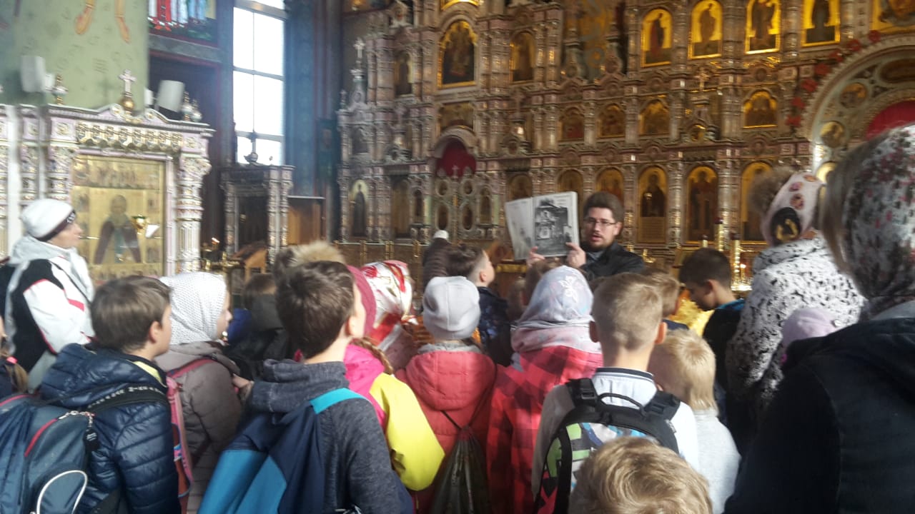 В ходе экскурсии ребята познакомились с историей собора, его убранством, иконостасом. Батюшка провел ребят на колокольню, где они увидели работу звонаря и услышали прекрасный колокольный звон.