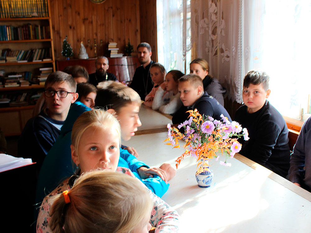 Ребята присутствовали на Божественной Литургии, исповедовались и причащались Святых Христовых Таин, а затем вместе с учениками Воскресной школы приняли участие в общей трапезе и уроке. Занятие было посвящено жизни святого прп. Сергия Радонежского и празднику Покрова Пресвятой Богородицы. На занятии присутствовал настоятель храма священник Илия Плешаков и клирик храма священник Кирилл Серышев. После занятия все получили подарки.