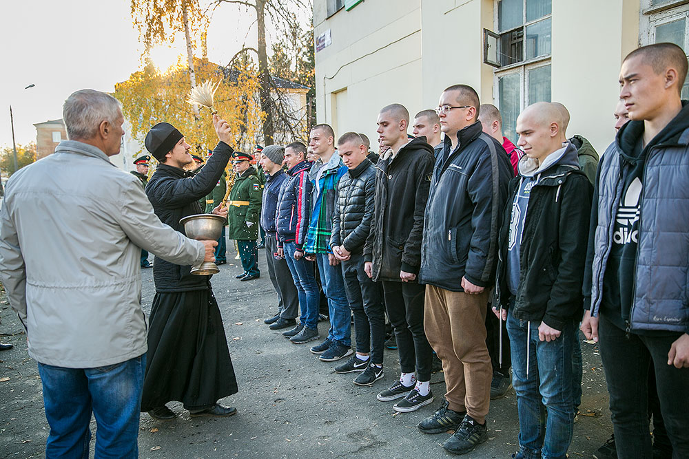 Представителем Щелковского благочиния на отправке был ответственный благочиния по работе с вооруженными силами и правоохранительными органами священник Димитрий Выдумкин. В своем поздравительном слове отец Димитрий рассказал об особой важности служения в армии в деле становления настоящего мужчины и призвал новобранцев служить ответственно и добросовестно. После слов напутствия отец Димитрий осенил молодое пополнение Крестом и окропил каждого святой водой.
