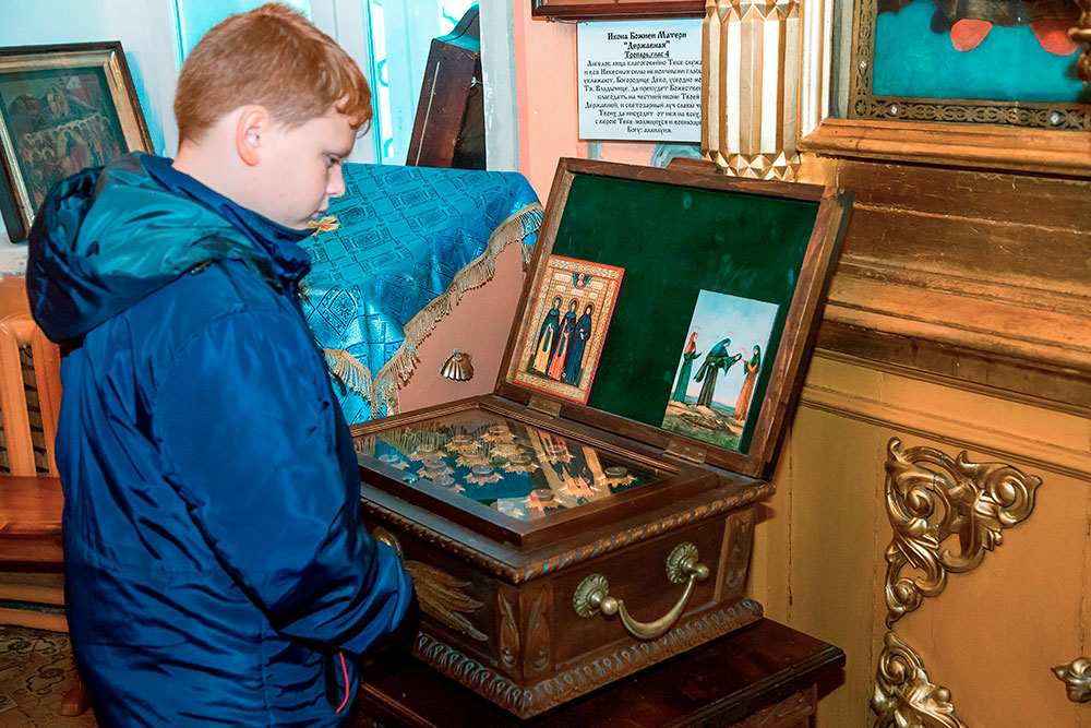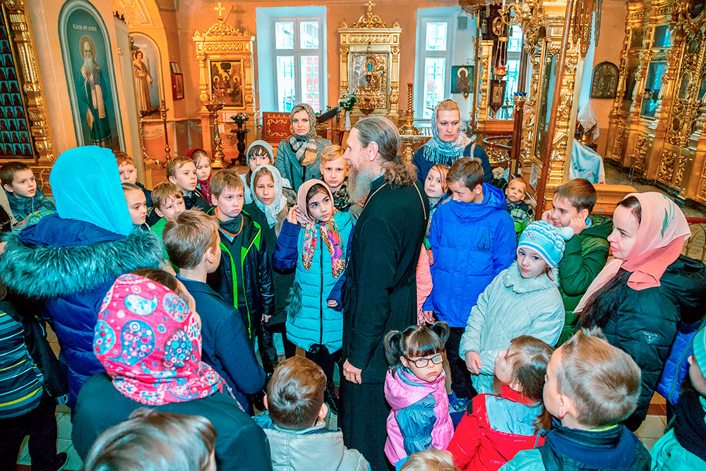 Настоятель храма протоиерей Алексий Никонов и катехизатор храма Светлана Зеленко провели беседу и экскурсию по храму. Дети с интересом слушали рассказ об истории храма и храмовых иконах. Задавали вопросы, активно участвовали в беседе. После окончания беседы юные гости получили подарки – детские православные книги.