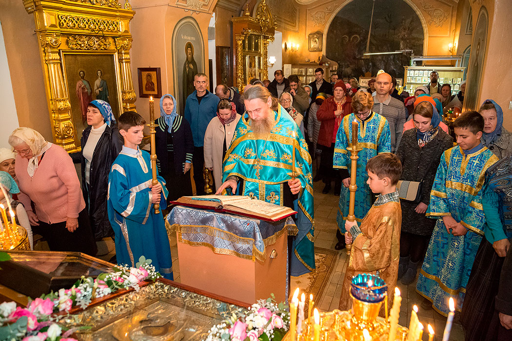 Накануне, 3 ноября, в храме было совершено праздничное Всенощное бдение, а в самый день праздника – Божественная Литургия. Богослужение возглавил настоятель храма протоиерей Алексий Никонов в сослужении клириков храма. По окончании Литургии был совершен крестный ход вокруг храма. После крестного хода отец Алексий обратился к прихожанам со словами поздравления с престольным праздником.