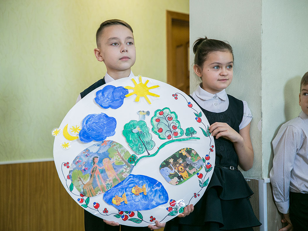 Целью мероприятия ставилось творческое закрепление пройденного материала по изучаемым предметам. Воспитанники в стихотворной форме представили перед зрителями цикл о сотворении мира, используя приготовленные своими руками поделки и рисунки, а также хором исполнили несколько песен.