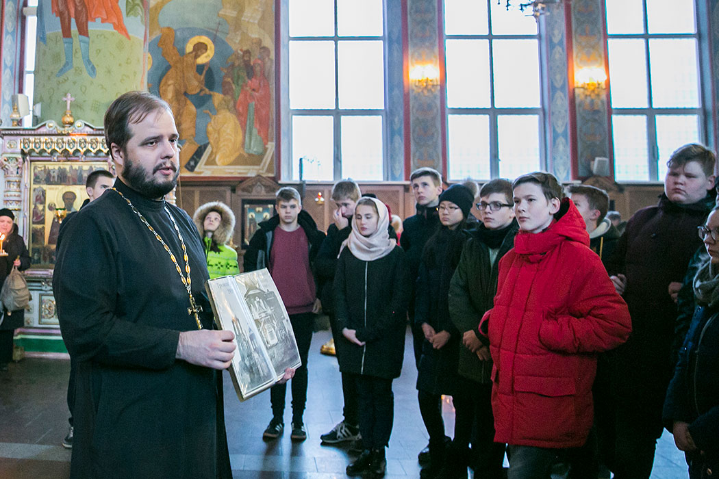 22 ноября в Троицком соборе г. Щелково прошла экскурсия для учащихся школы №11 г. Щелково. Экскурсию провел клирик храма священник Евгений Трушин.