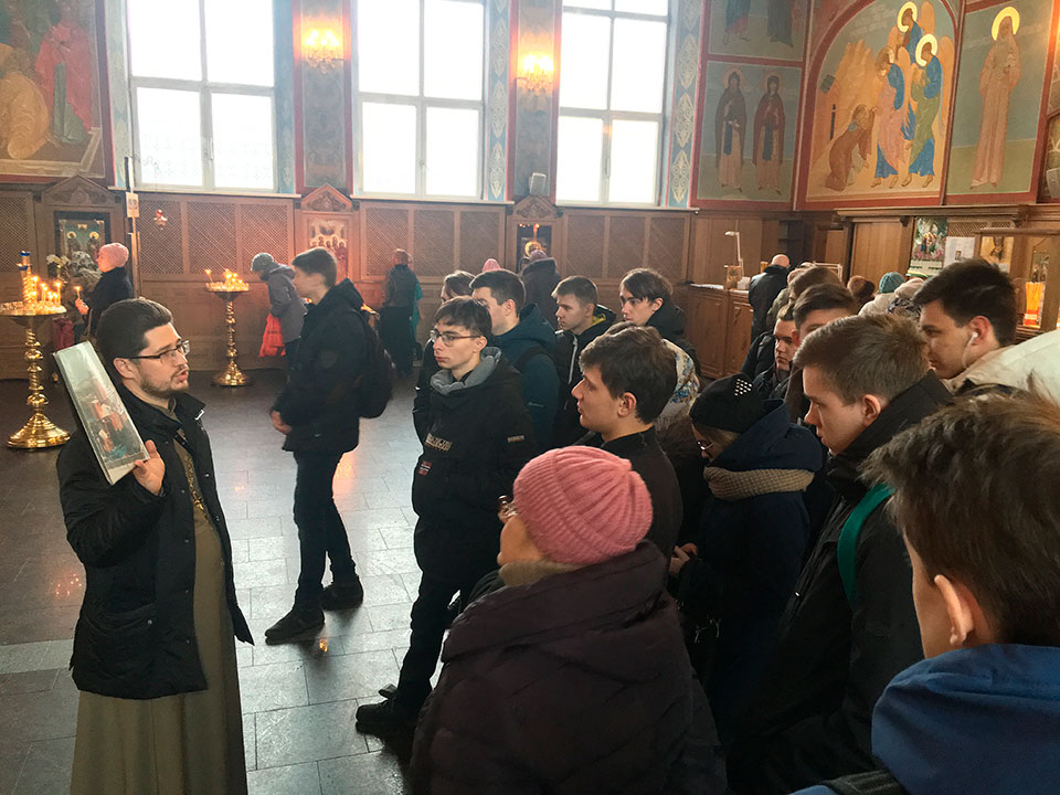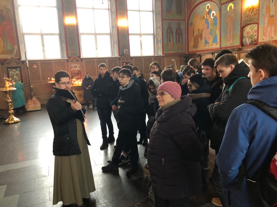 Экскурсию провел клирик храма, руководитель миссионерского отдела благочиния священник Димитрий Третьяков. В ходе экскурсии ребята познакомились с историей храма и его сегодняшней жизнью.