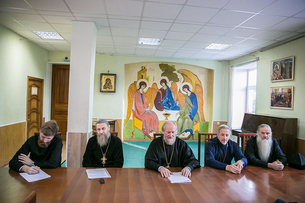 Оно началось с сообщения благочинного церквей Щелковского округа протоиерея Андрея Ковальчука о проведении Рождественских чтений в благочинии, о предстоящем Годичном собрании духовенства Московской епархии, о восстановлении порушенных святынь Подмосковья и о ходе восстановления Знаменского храма села Ивановское Волоколамского района.