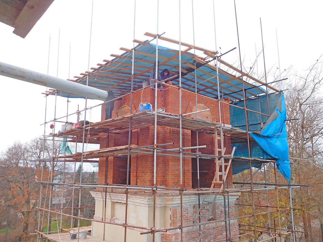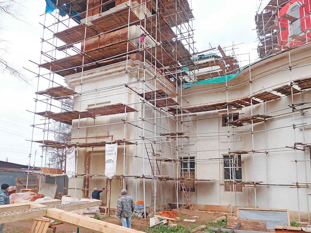 В данный момент идет восстановление двух колоколен и фасада храма. Внешне храм уже постепенно принимает свой первоначальный вид.