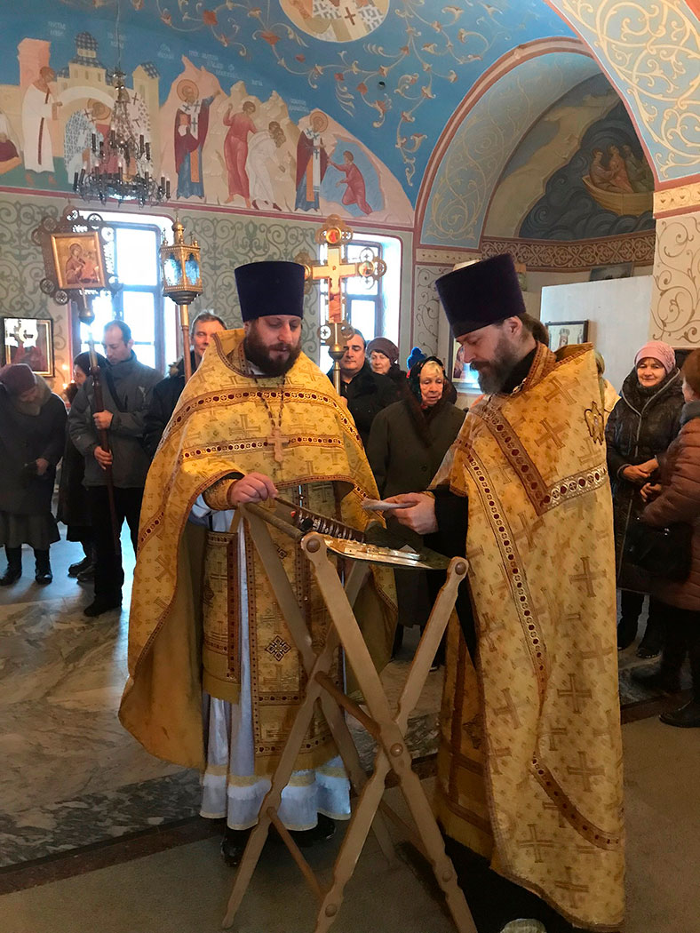 Богослужение в этот день возглавил настоятель храма священник Антоний Сенько в сослужении клирика храма священника Евгения Попова. После Божественной литургии был совершен праздничный молебен с крестным ходом вокруг храма, после которого отец Антоний обратился к прихожанам храма со словами поздравления.