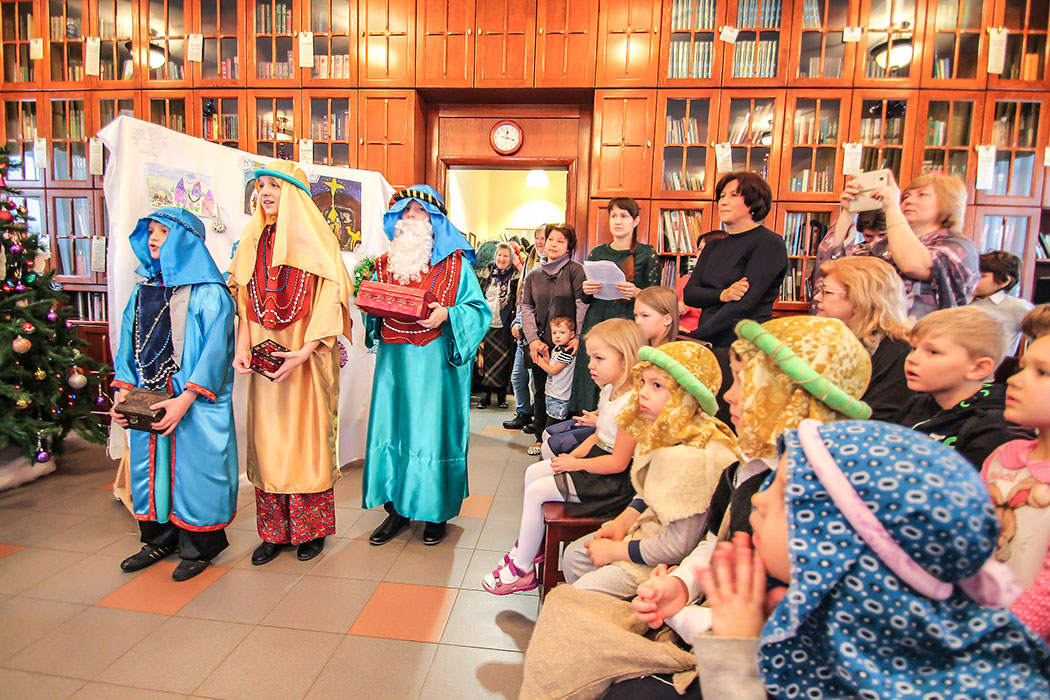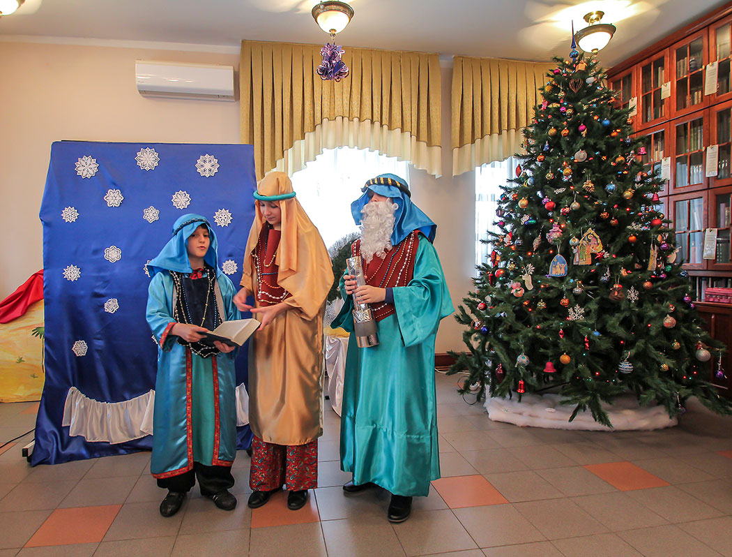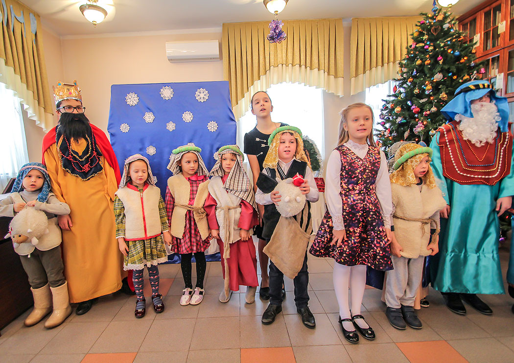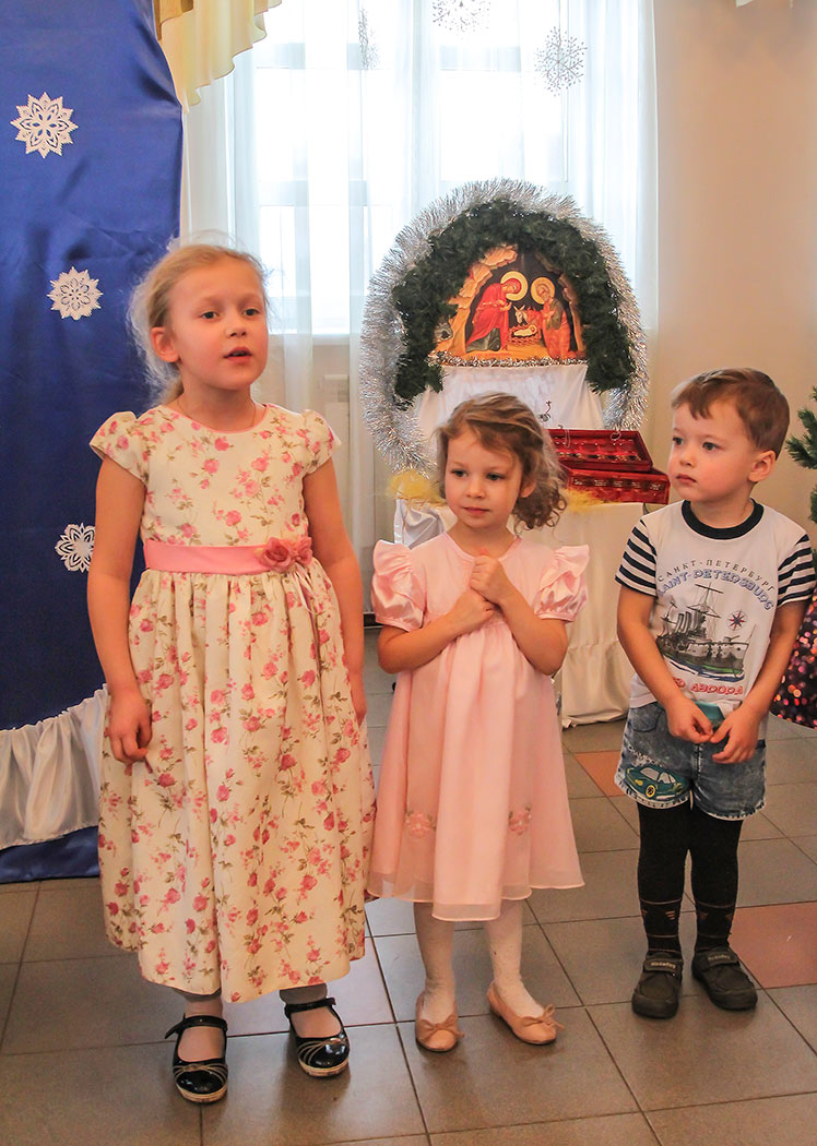 Воспитанники детской воскресной школы подготовили театральную постановку о Рождестве Христовом. После спектакля юные гости, пришедшие на детский праздник, рассказывали стихи, пели песни и демонстрировали свои музыкальные способности игрой на музыкальных инструментах. Всё детское творчество в этот день было направлено на прославление родившего в мир Спасителя.