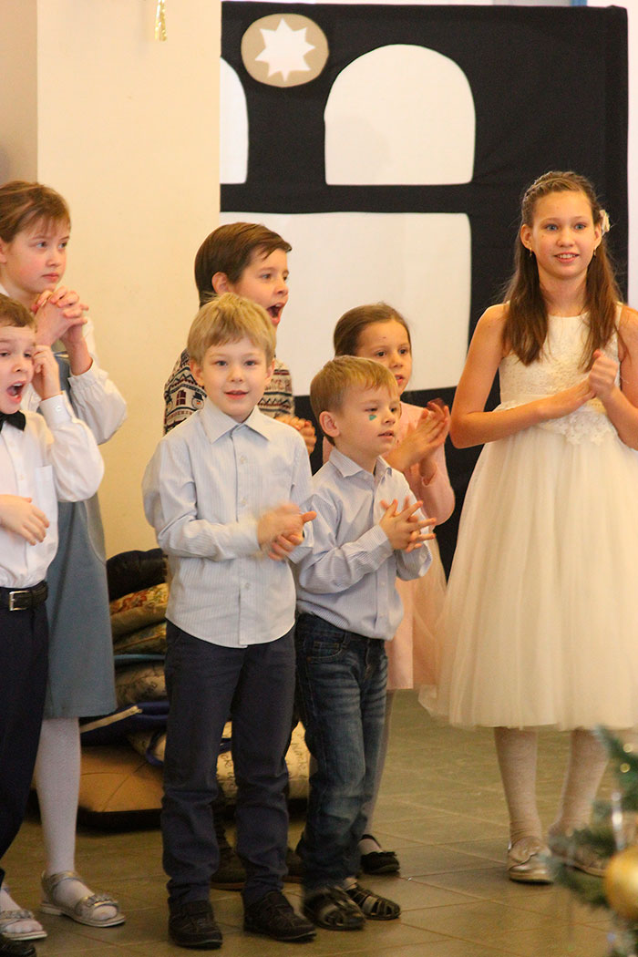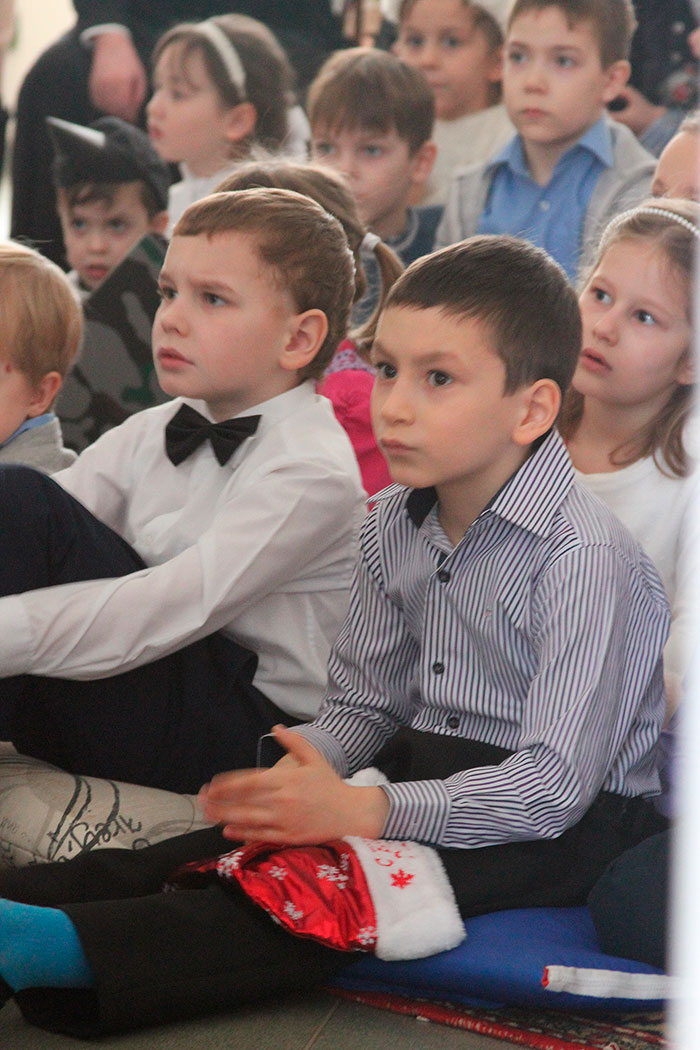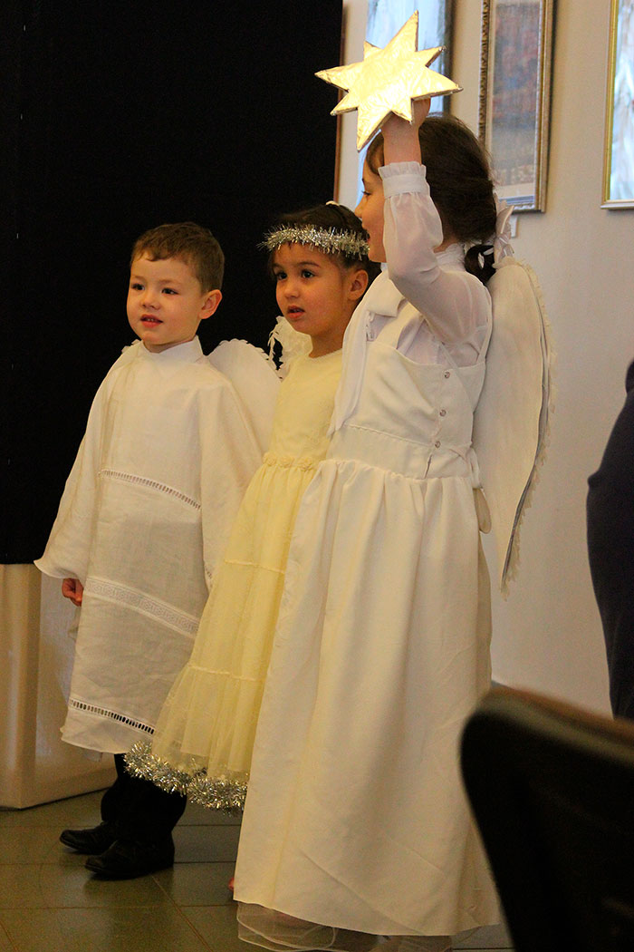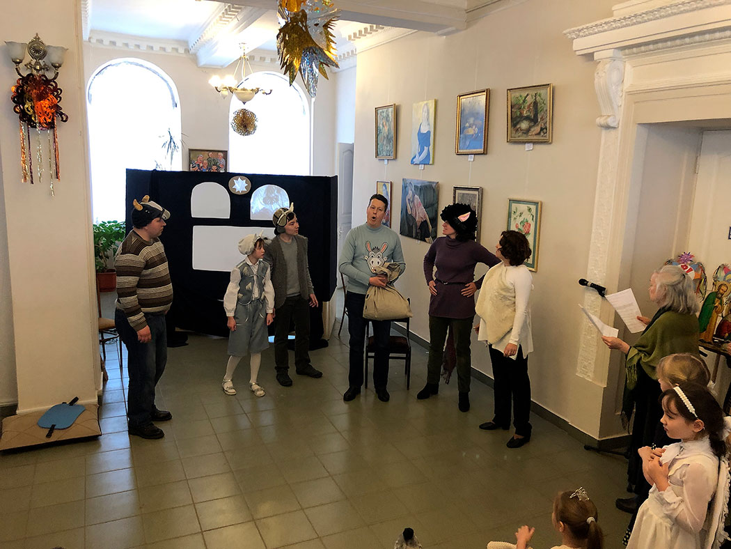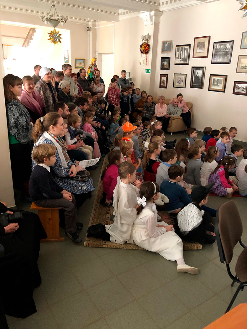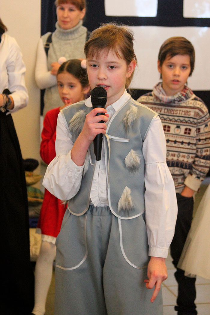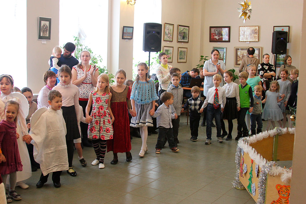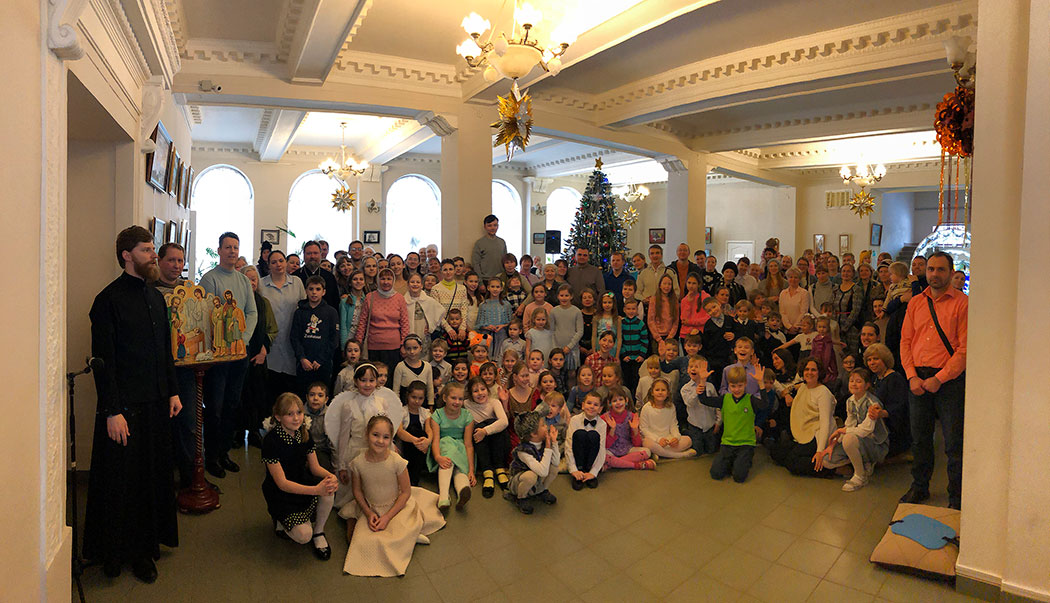 Открыл праздник настоятель храма священник Димитрий Поповский, который поздравил собравшихся с великим праздником Рождества Христова. Затем перед собравшимися выступили дети из младшей группы воскресной школы, которые под руководством Ксении Тарасюк подготовили два номера: «Вертеп» (театр теней) и «Варежка». После малышей всех порадовал рождественским настроением дедушка Мороз, а завершило праздник выступление группы прихожан с постановкой «Ночь после Рождества» под руководством Н.А.Андреевой.