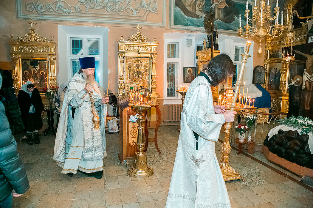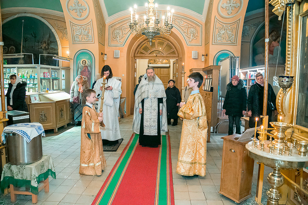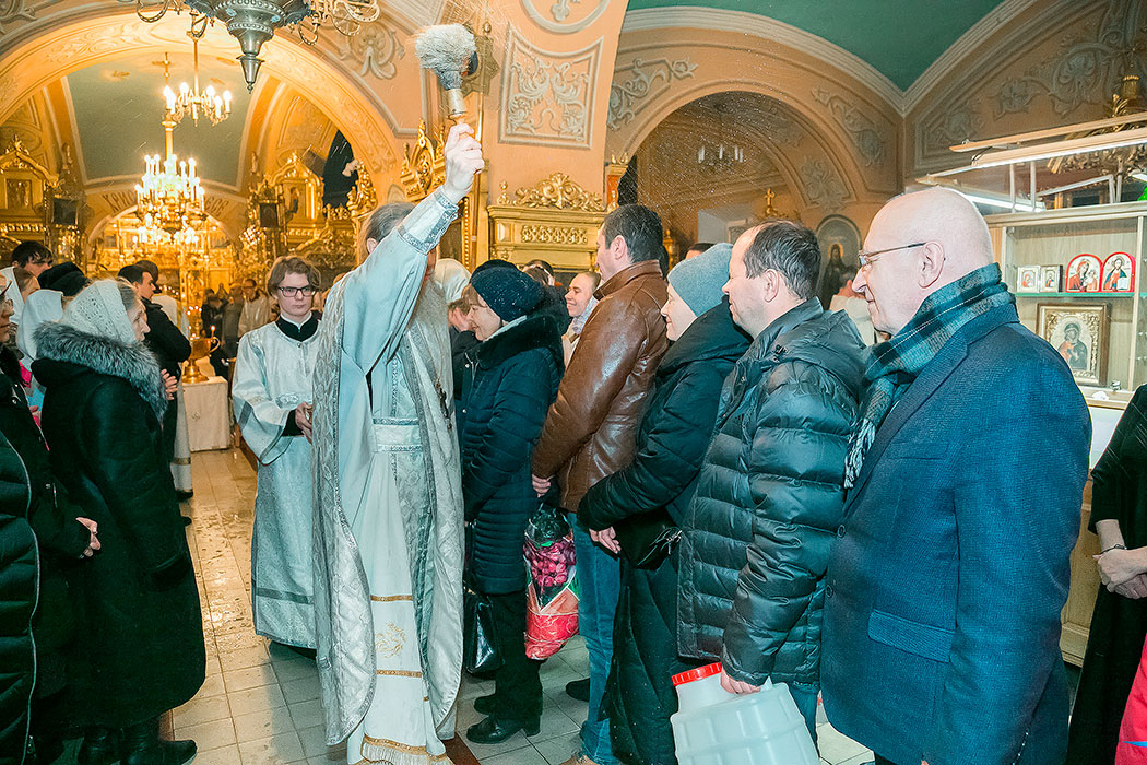 Божественную литургию в этот день совершил настоятель храма протоиерей Алексий Никонов. По окончании Литургии протоиерей Алексий совершил чин великого освящения воды. А накануне, 18 января, в храме было совершено Всенощное бдение.