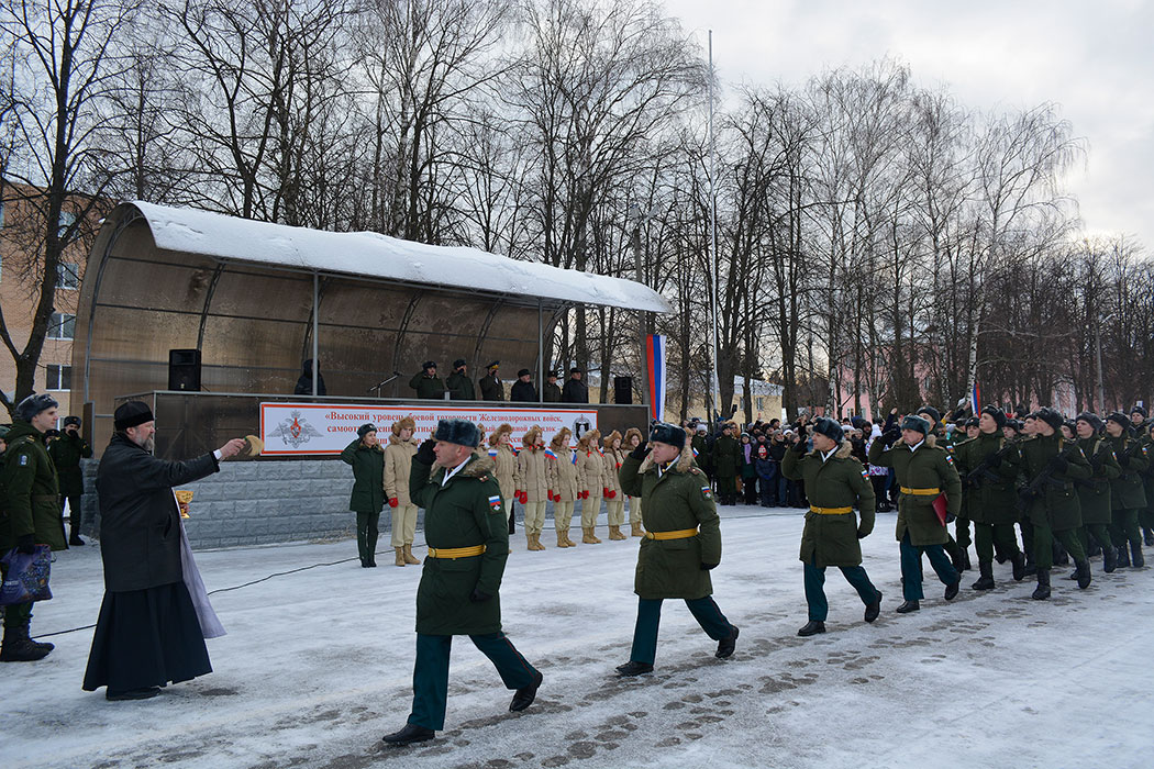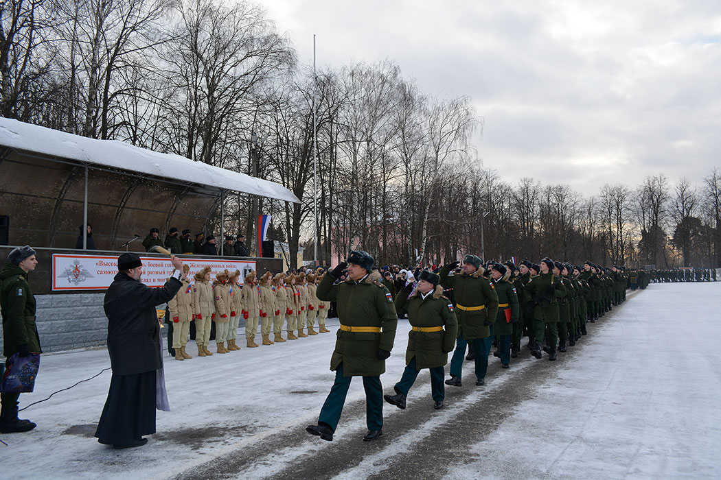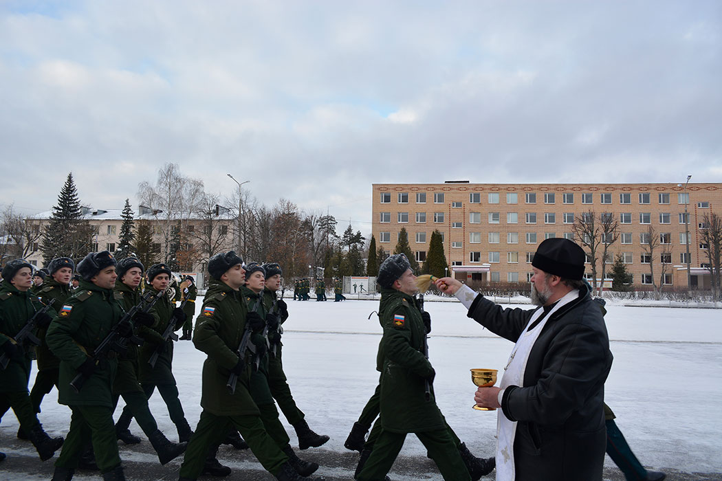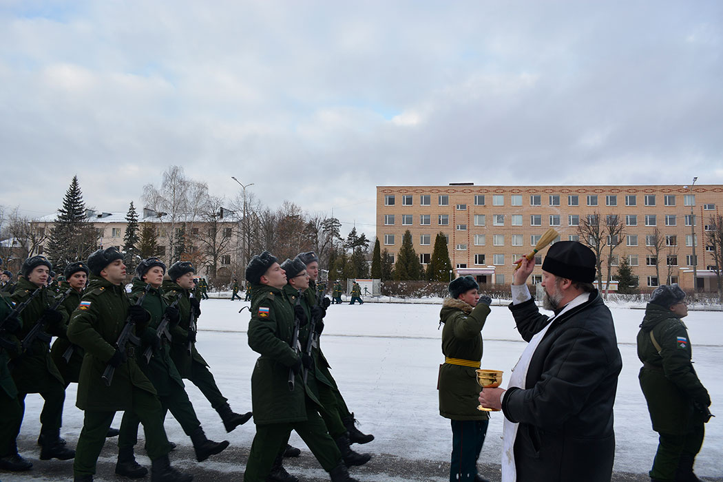 Среди почетных гостей, участвовавших в приведении к присяге молодого пополнения, был и клирик Державного храма г. Фрязино священник Дионисий Маевский. После принятия присяги новобранцы прошли торжественным маршем, а отец Дионисий окропил строй святой водой.