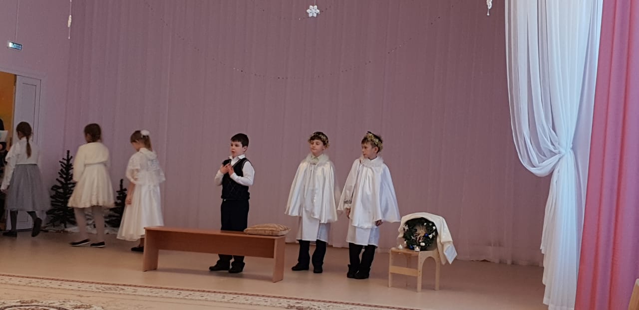 Учащиеся второго и третьего класса под руководством своих классных руководителей Гаевской Маргариты Петровны и Тигиной Ольги Анатольевны подготовили и показали очень добрую и поучительную сказку-спектакль «Путешествие в Рождественскую ночь». Сказочные события, происходящие на сцене понравились и воспитанникам, и взрослым, ведь в любом возрасте хочется верить, что добро рано или поздно победит зло, что от пороков можно избавиться и что хоть на чуть-чуть можно снова вернуться в детство и поверить в чудеса! Как хорошо, что в сказках всегда все заканчивается добром!