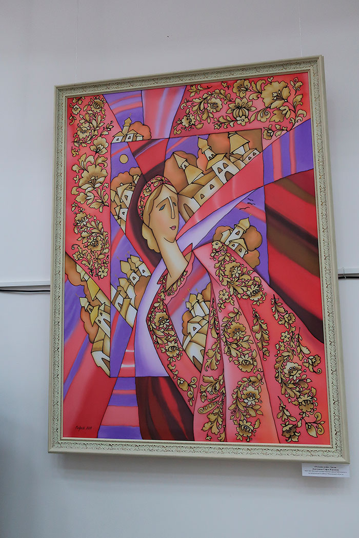 В экспозиции выставки представлены творческие работы художницы Софьи Дмитриевой, выполненные в технике холодного батика: декоративные панно, картины, платки, акварельные этюды и зарисовки. Эта техника предполагает особый способ нанесения росписи – при помощи замкнутой контурной обводки с резервирующим составом, что придаёт рисунку своеобразный характер. Для нанесения контура обычно применяют стеклянные трубочки.