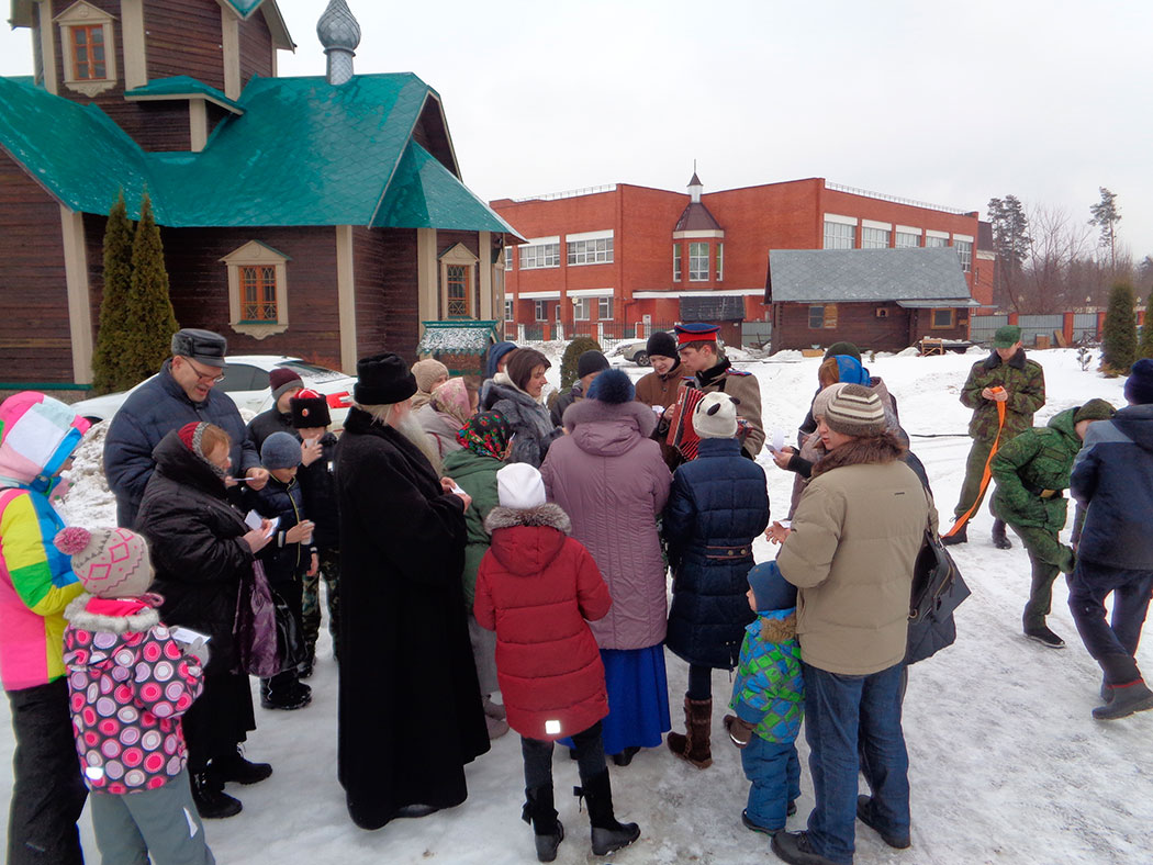 С вступительным словом выступил настоятель храма протоиерей Виктор Догадаев. Были организованы песни и пляски под гармонь, вкусные блины и горячий чай. Чкаловский Казачий Цесаревича Алексея Кадетский Отряд показал рукопашный бой, бой за шапки, и доблестную оборону крепости.