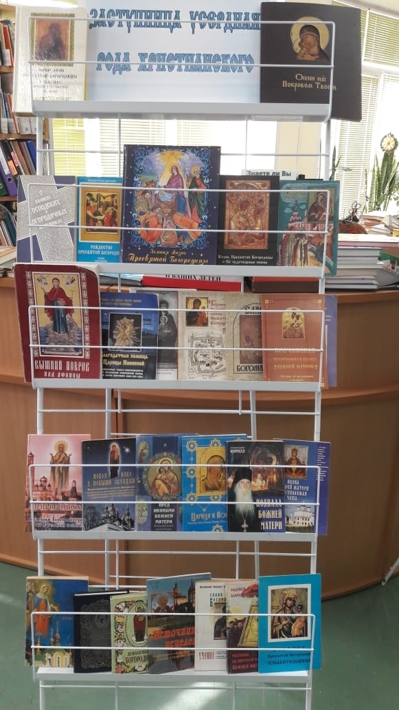 Весь день у книжной выставки «Заступница усердная рода христианского», посвящённой Пресвятой Богородице и её чудотворным иконам, проводились беседы и обзоры. Дополняли информацию стихи о Божией Матери и Богородичных иконах протоиерея Андрея Логвинова.