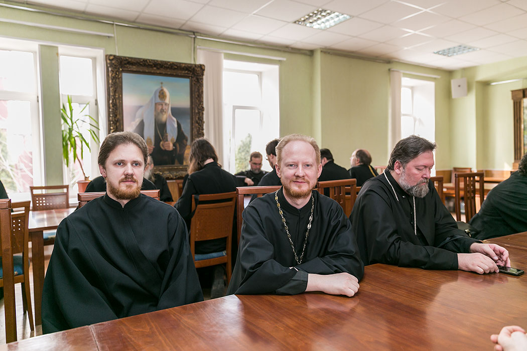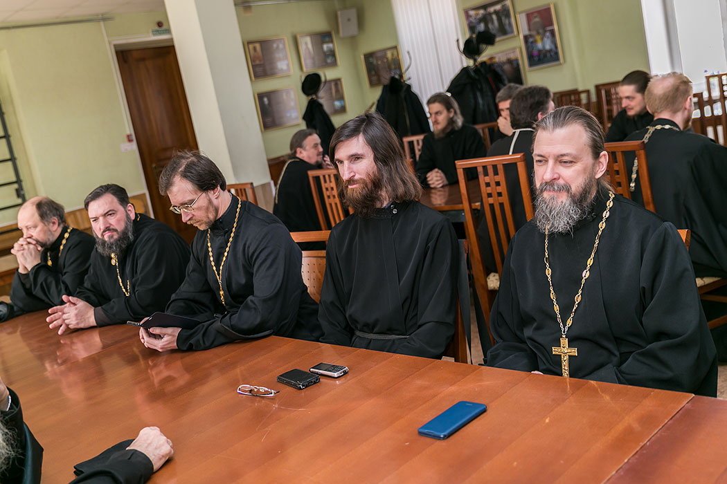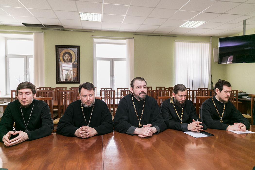 В завершении совещания состоялся пастырский семинар настоятеля Державного храма г. Фрязино священника Димитрия Поповского «Епитимьи в современных условиях. Общецерковная практика и ее обсуждение. Границы компетенции священника. Практические советы на исповеди для увещевания и исправления кающегося», который сопровождался живой дискуссией и обсуждением содержащихся в докладе вопросов.