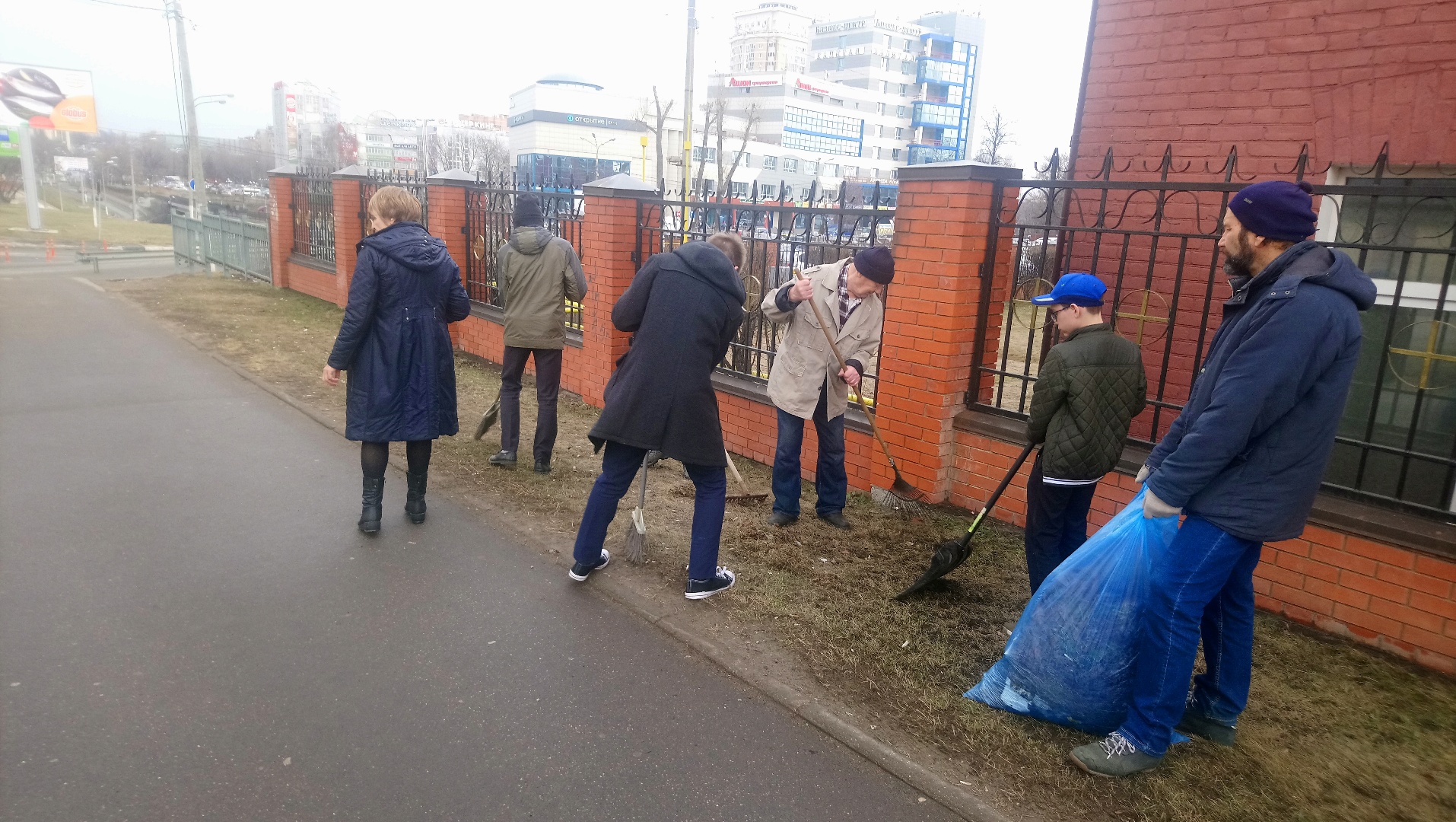 Гимназисты вместе с учителями и работниками Троицкого Собора г. Щелково провели генеральную уборку прилегающих к храму территорий и тротуаров: собрали мусор, прошлогоднюю листву, подмели тротуары и газоны.