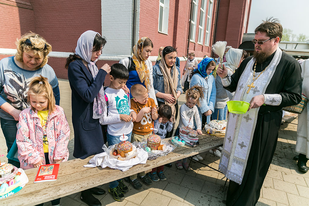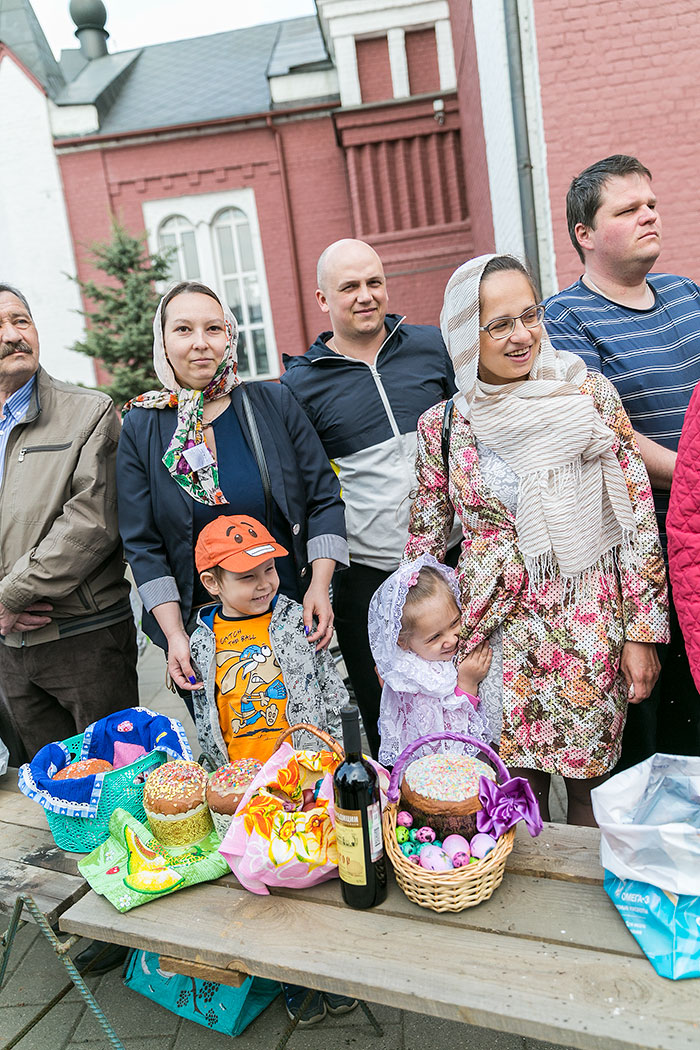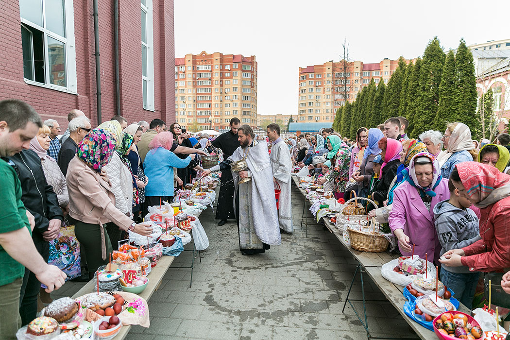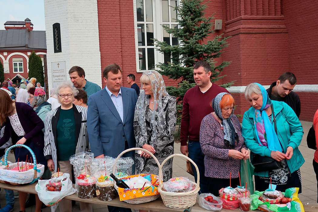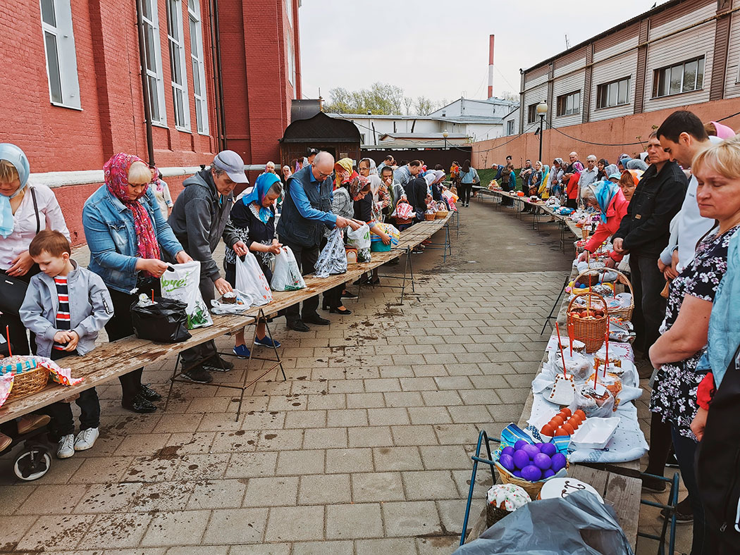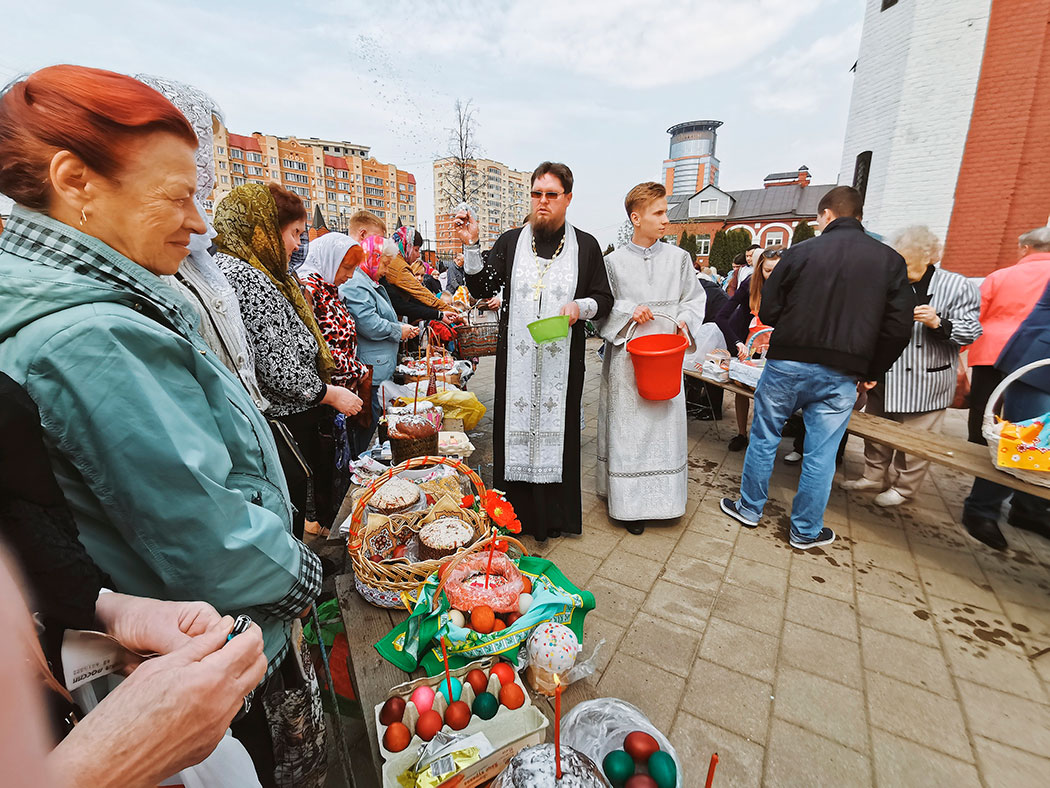 По окончании богослужения отец Андрей освятил крашеные яйца, куличи и пасхи, принесенные в этот день в храм жителями Щелкова.