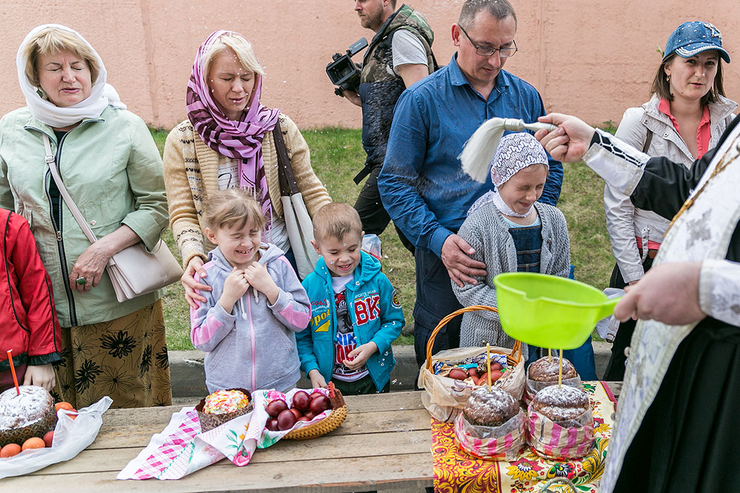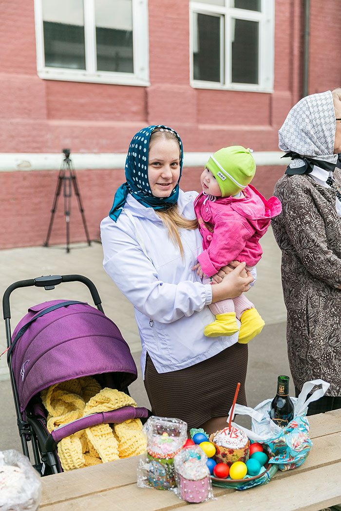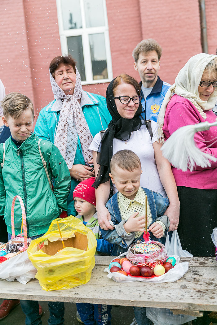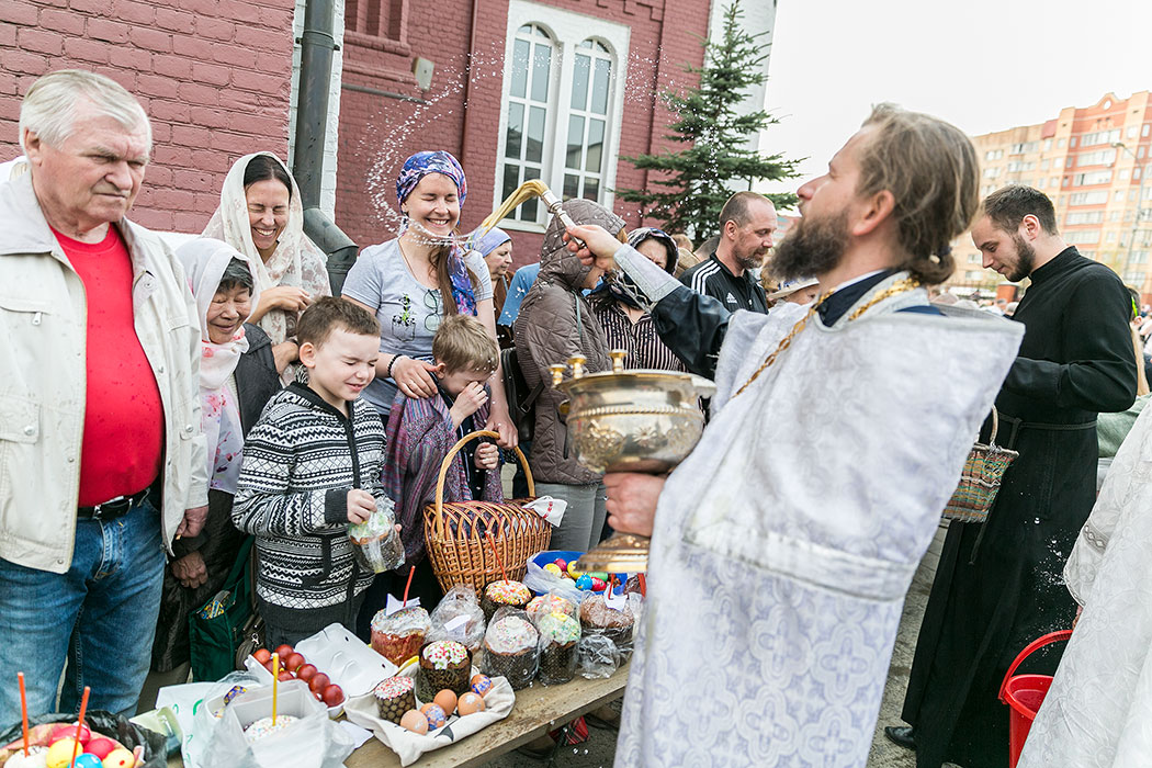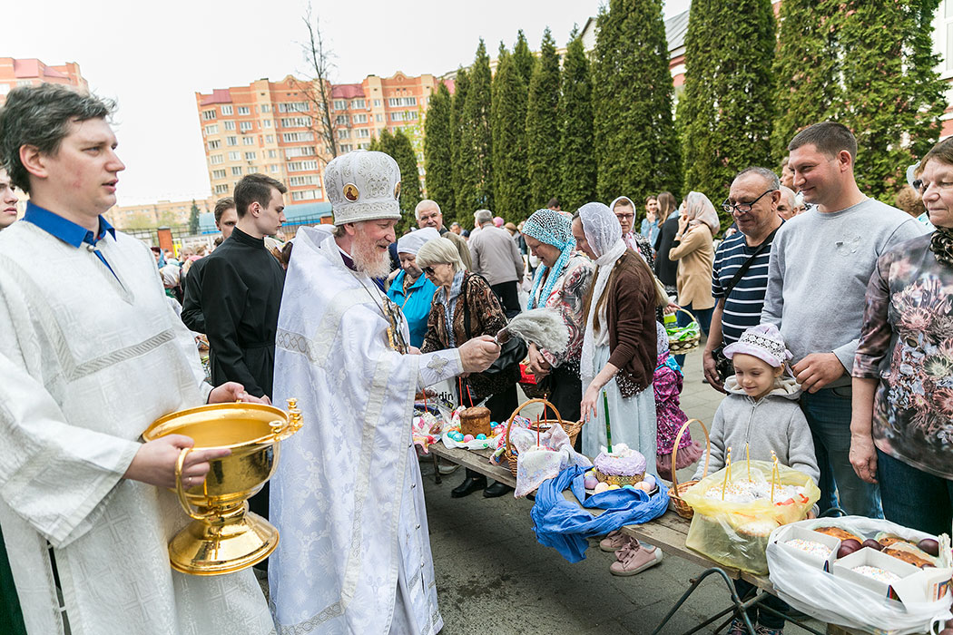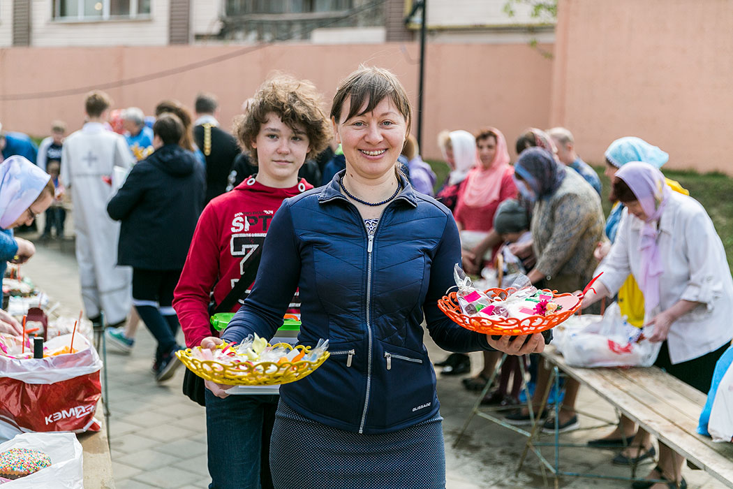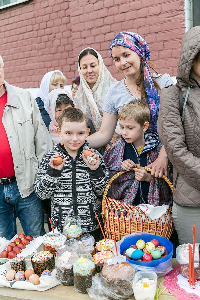По окончании богослужения отец Андрей освятил крашеные яйца, куличи и пасхи, принесенные в этот день в храм жителями Щелкова.
